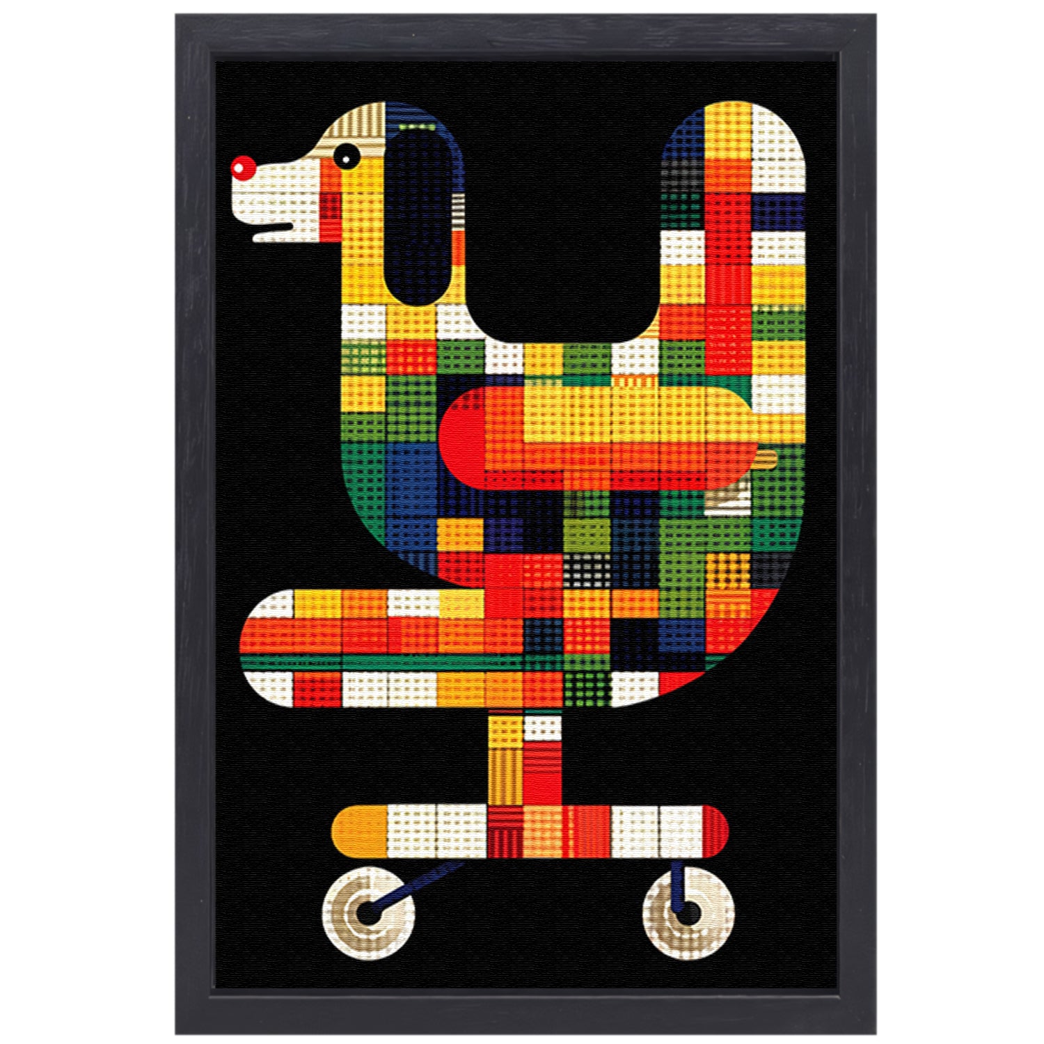 Abstract hond in Kleurrijk bureaustoel canvas met baklijst