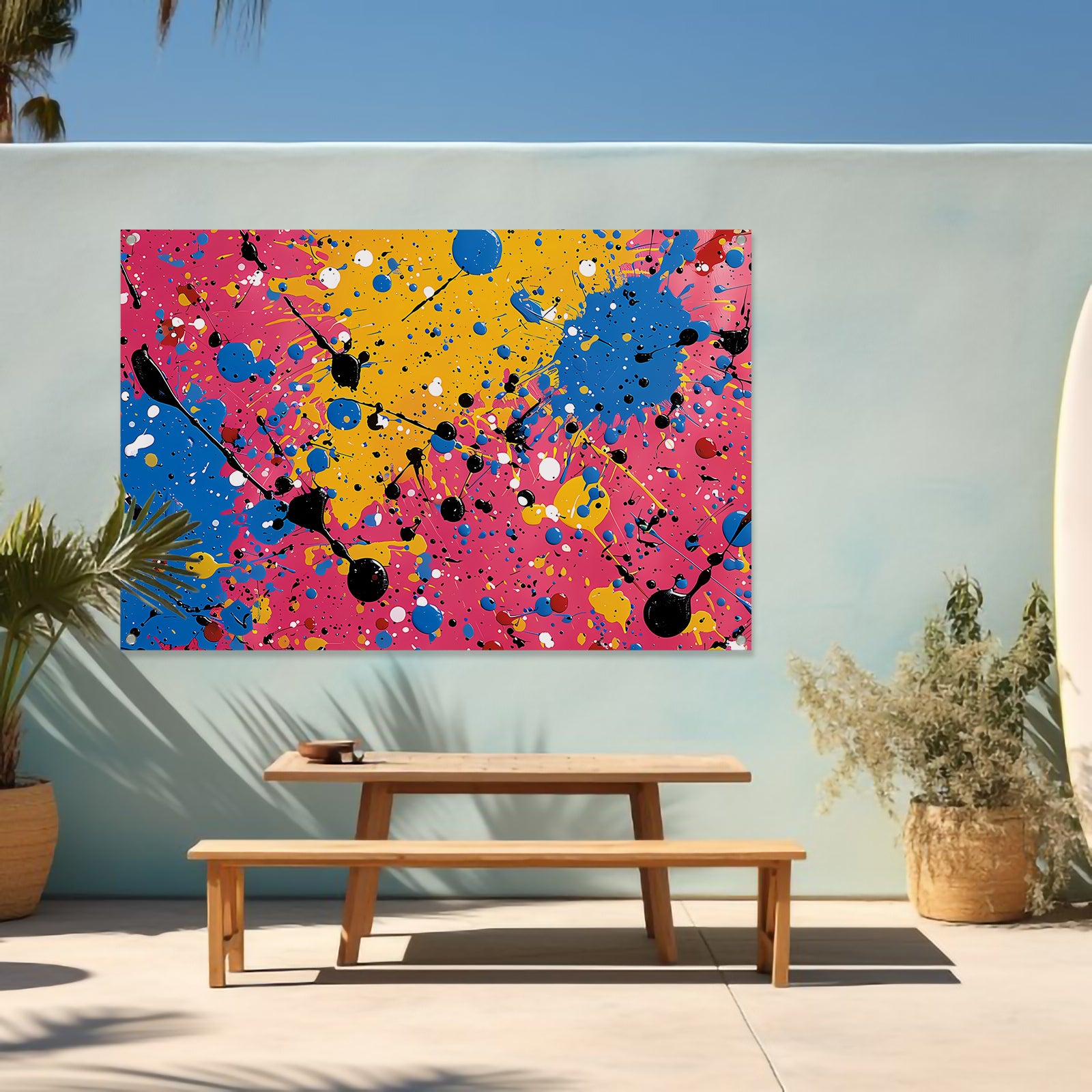 Onze tuinposters zijn UV- en waterbestendig, waardoor ze bestand zijn tegen zon en regen en hun kleuren langdurig mooi blijven. Alle tuinposters van De Muurdecoratie zijn voorzien van ringen in de hoeken, zodat je ze eenvoudig kunt ophangen. Let op: onze tuinposters worden niet met ophangsysteem geleverd.