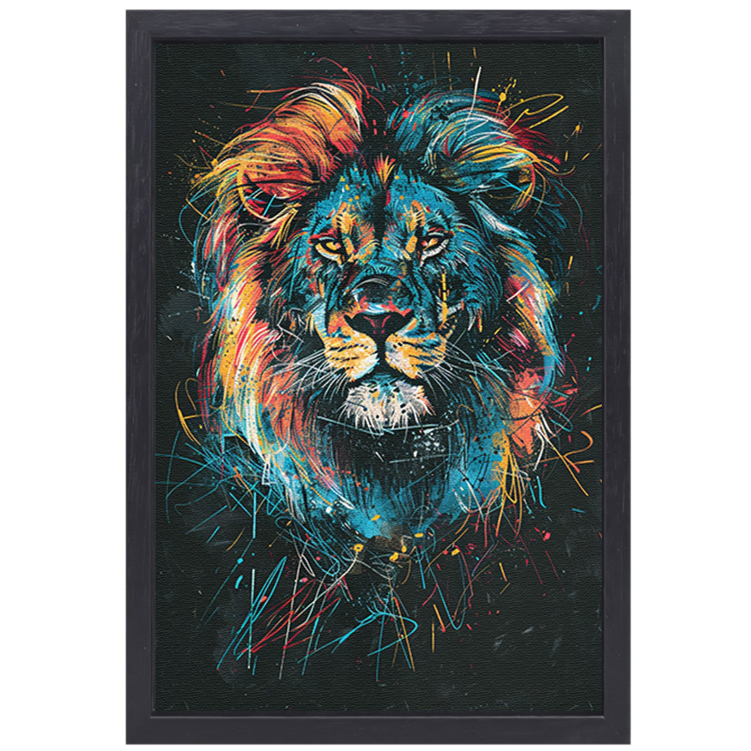 Abstract kleurenportret van een leeuw canvas met baklijst