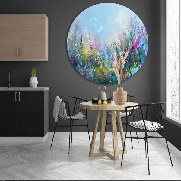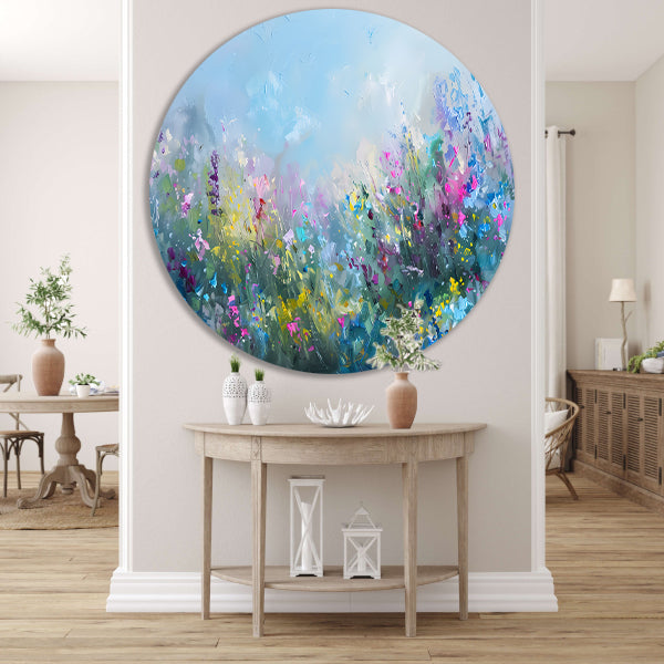 Abstract kleurrijk bloemenveld in natuurstijl forex muurcirkel