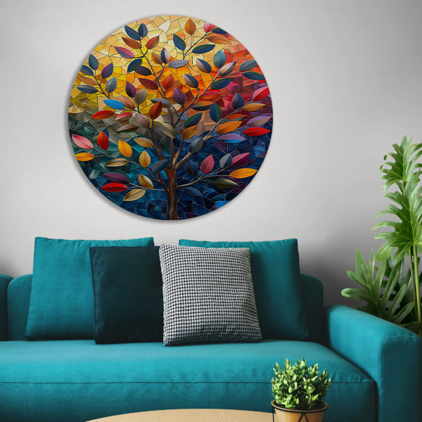 Abstract Kleurrijk Boom in Herfsttinten forex muurcirkel