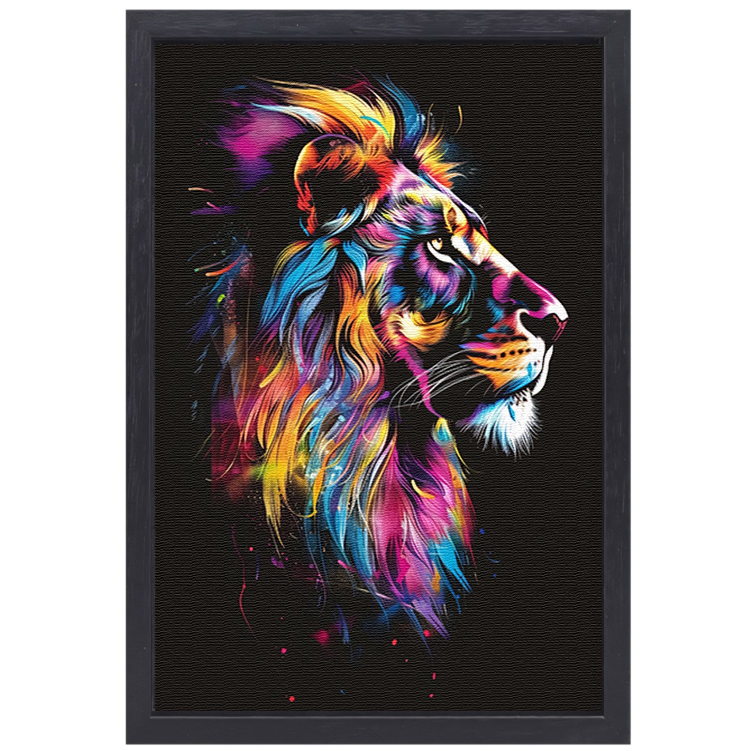 Abstract Kleurrijk Leeuw in Profiel canvas met baklijst