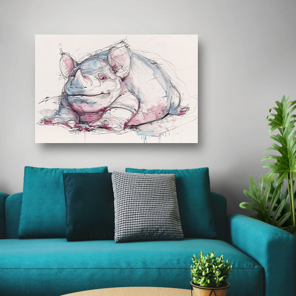 Abstract kleurrijk neushoorn schilderij voor interieur canvas