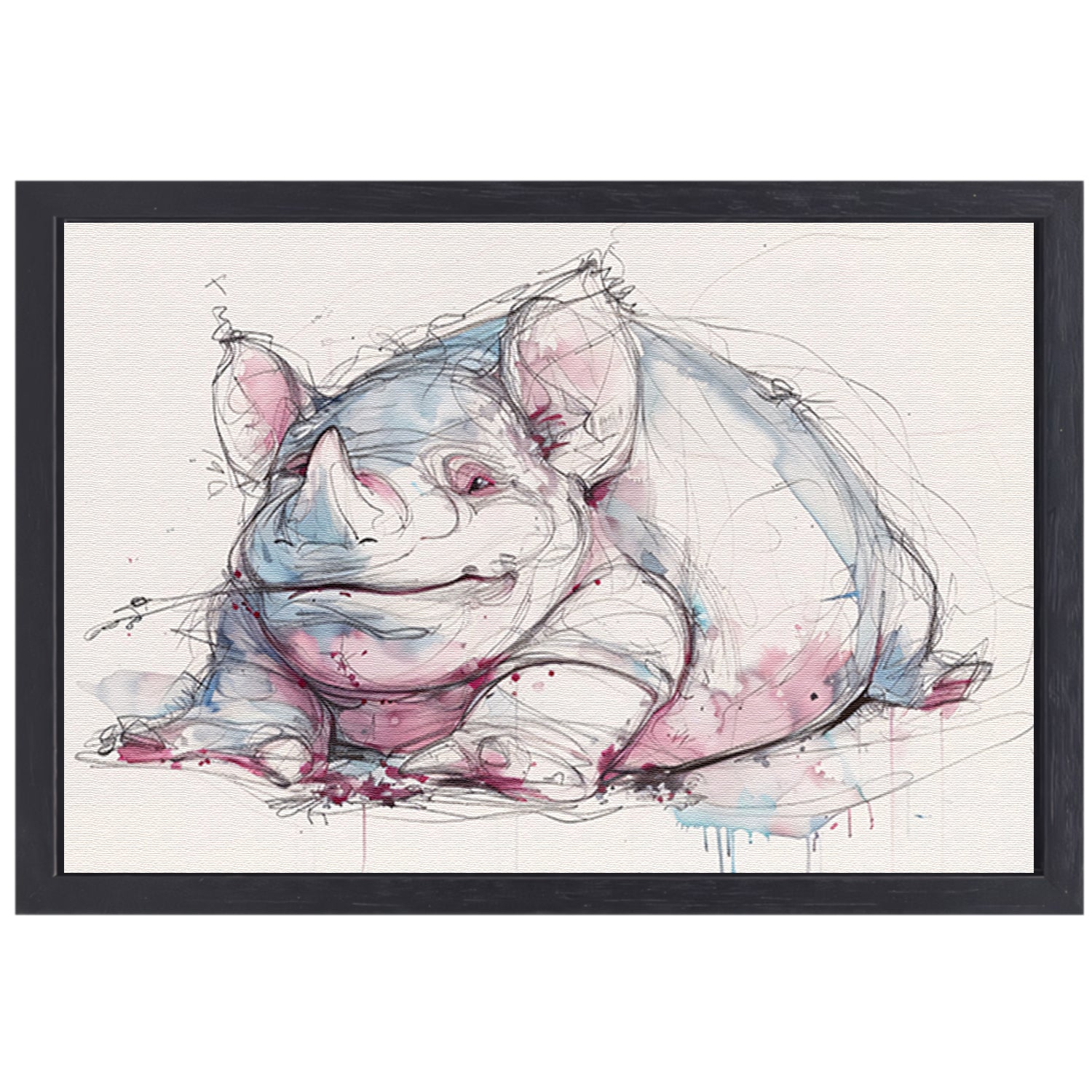 Abstract kleurrijk neushoorn schilderij voor interieur canvas met baklijst