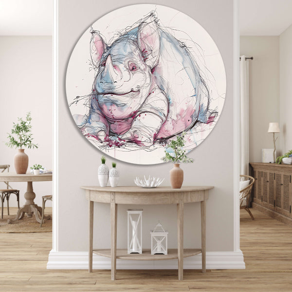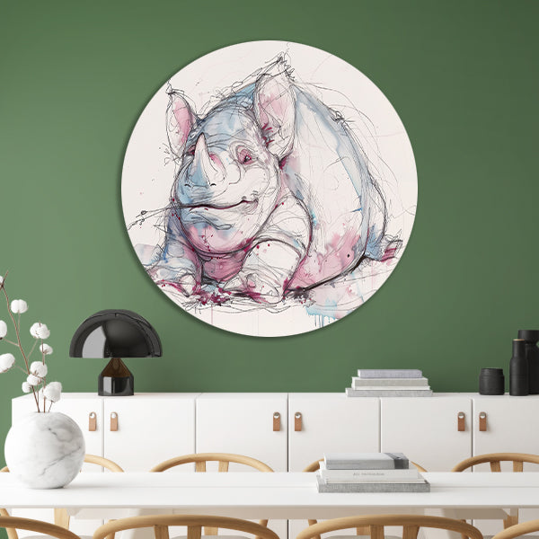 Abstract kleurrijk neushoorn schilderij voor interieur forex muurcirkel