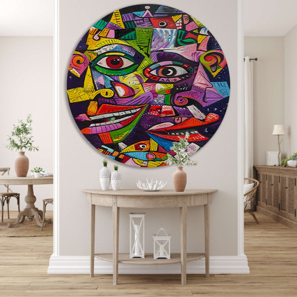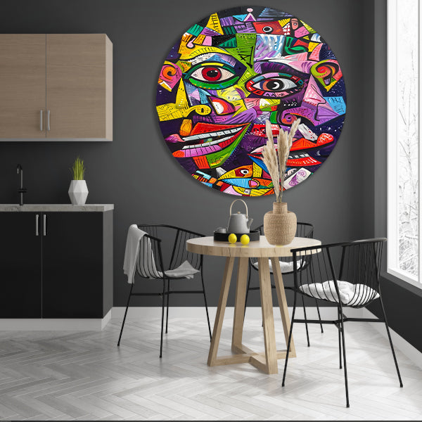Of je nu op zoek bent naar een opvallende toevoeging aan je woonkamer, slaapkamer of kantoor, deze abstracte kleurrijke muurcirkel is een geweldige keuze. Creëer een unieke en stijlvolle uitstraling in huis met dit prachtige kunstwerk. Bestel vandaag nog en geniet binnenkort van dit mooie abstracte portret aan jouw muur!