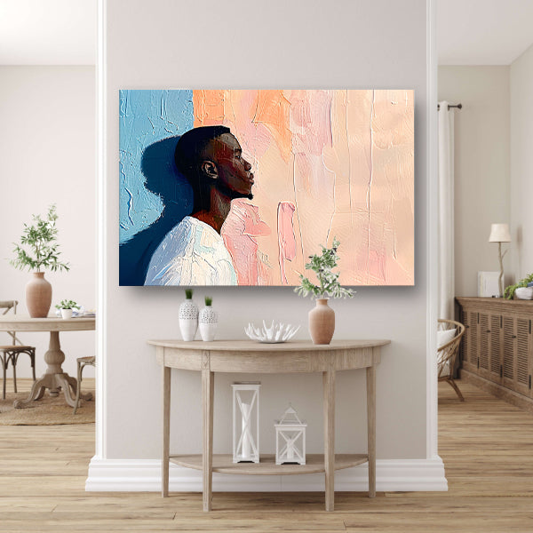 Abstract kleurrijk portret van een man canvas met baklijst