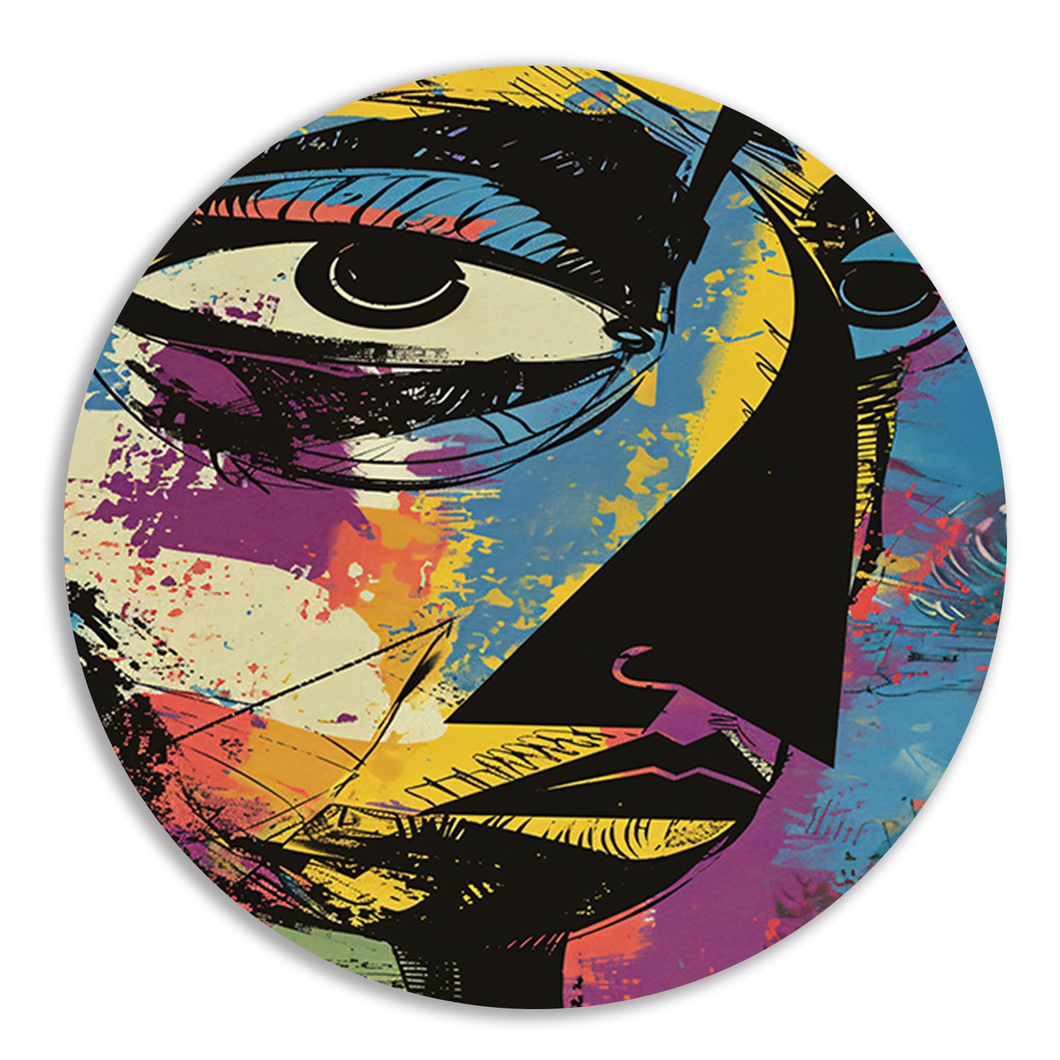 Abstract Kleurrijk Portret van Jean-Michel Basquiat aluminium muurcirkel