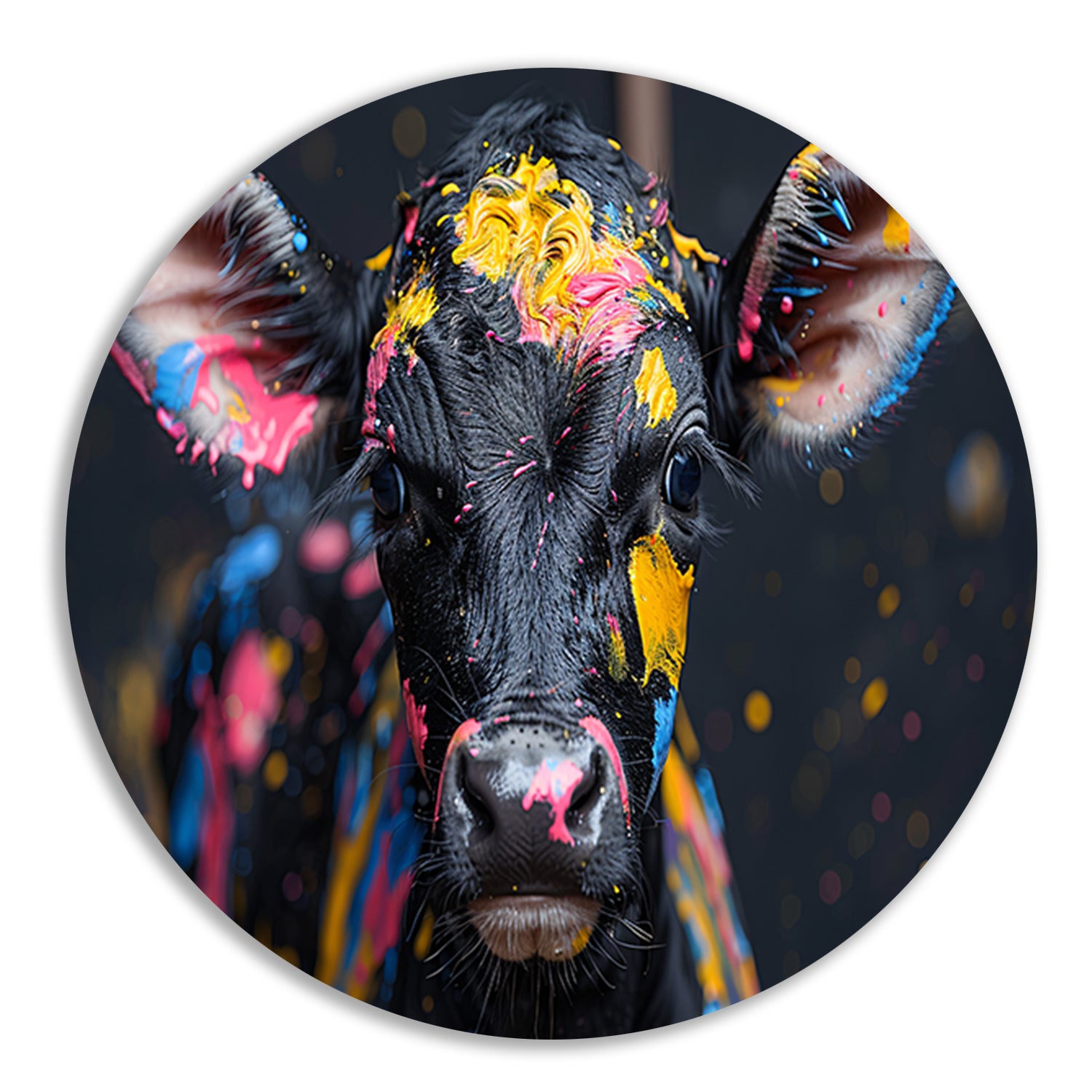 Abstract koe met verfspatten forex muurcirkel