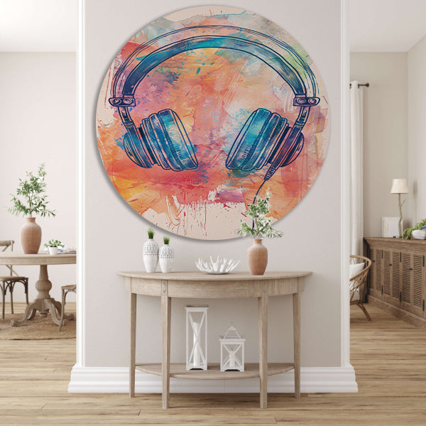 Abstract Koptelefoon met Verfspatten forex muurcirkel
