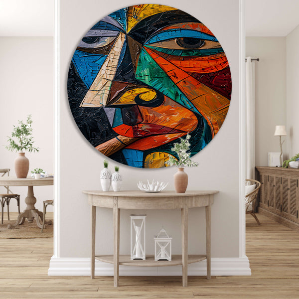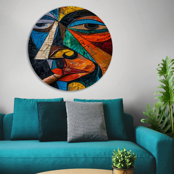 Abstract Kubistisch Portret van Roker aluminium muurcirkel