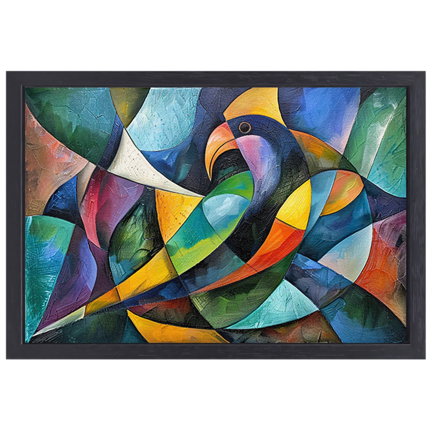 Abstract kunstwerk van kleurrijke papegaai canvas met baklijst
