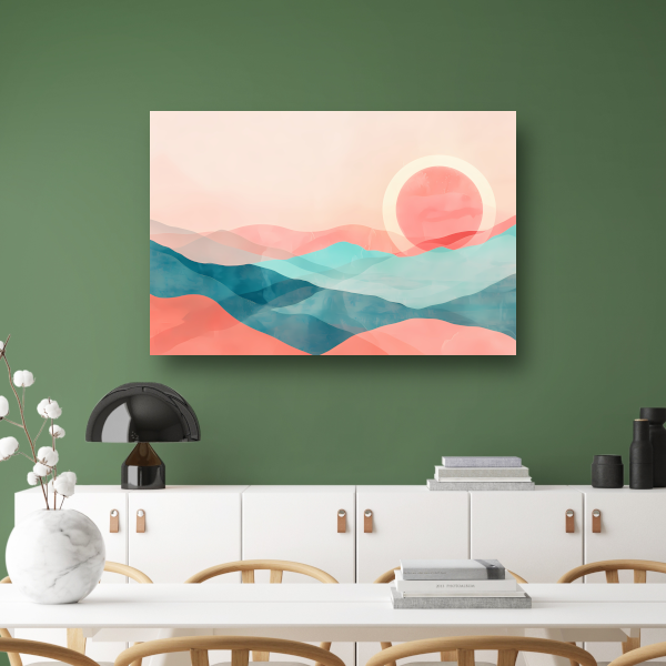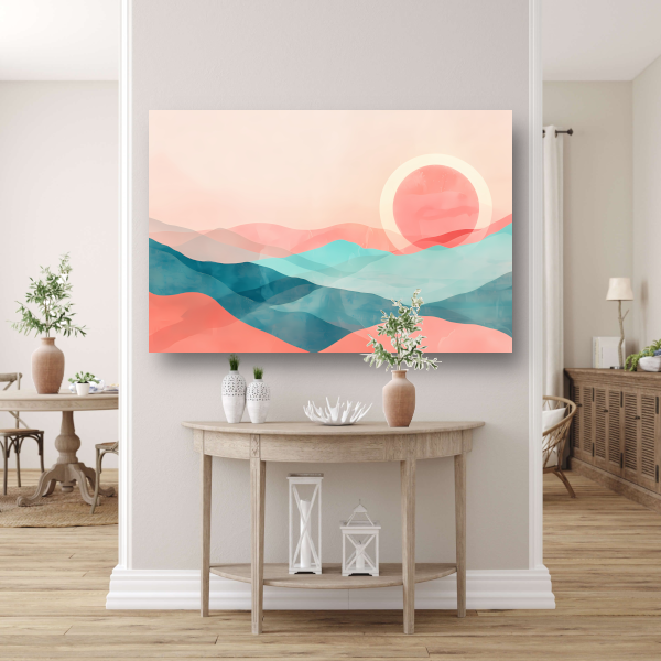 Abstract landschap met zonsondergang in pasteltinten acrylglas