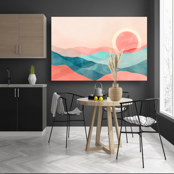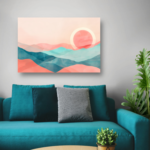 Abstract landschap met zonsondergang in pasteltinten canvas met baklijst