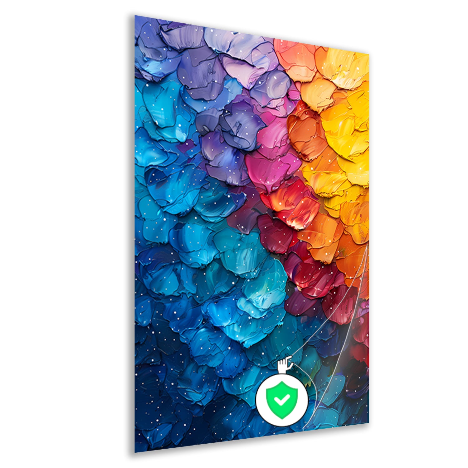 Plexiglas, ook wel acrylglas, zorgt voor een moderne en luxe uitstraling in je interieur. Plexiglas is lichter, sterker en duurzamer dan echt glas. Onze plexiglas schilderijen hebben een dikte van 5 mm. Onze plexiglas schilderijen zijn waterbestendig en goed beschermd tegen water en vuil. Schilderij wordt geleverd met gratis ophangsysteem (ophangplaat).