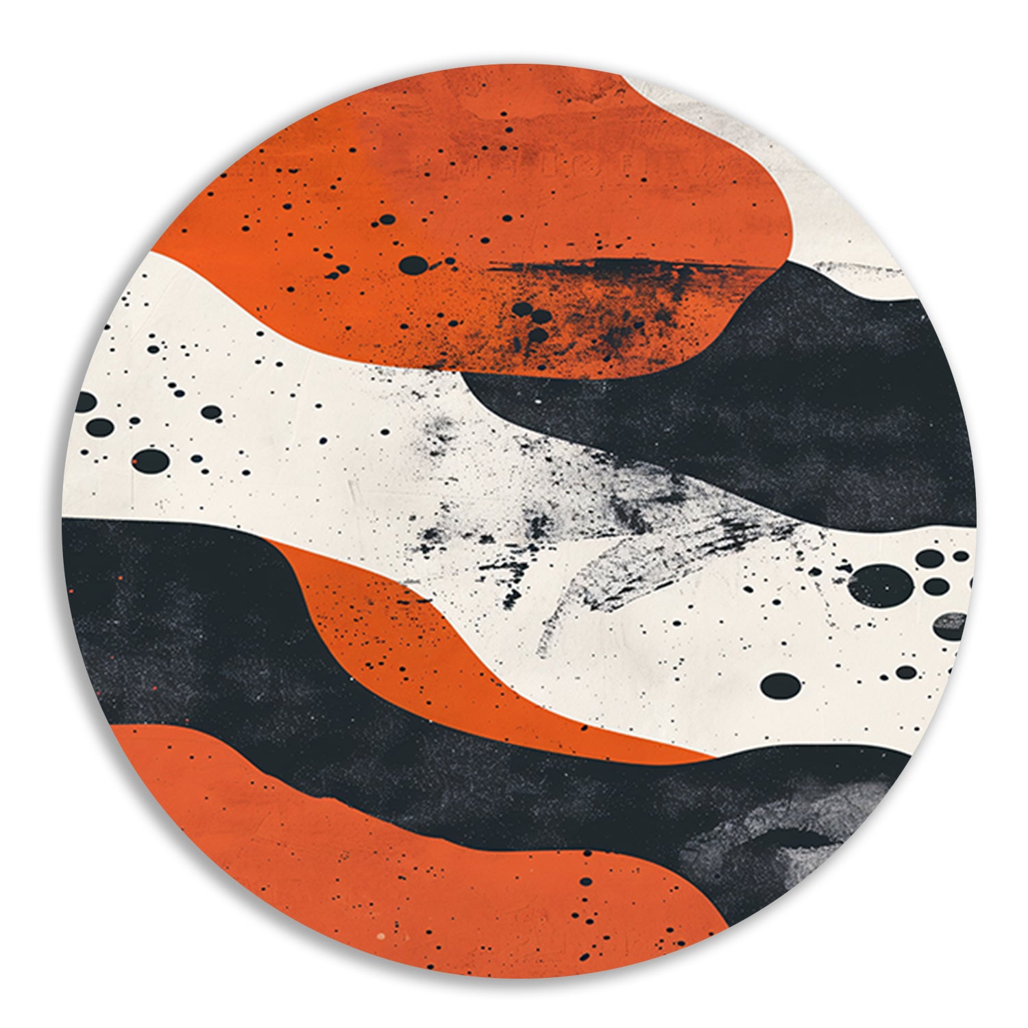 Abstract met oranje en zwart aluminium muurcirkel