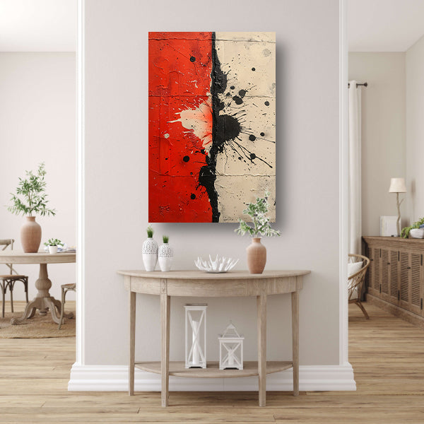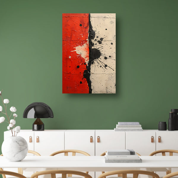 Abstract met rode en zwarte verfspatten canvas met baklijst