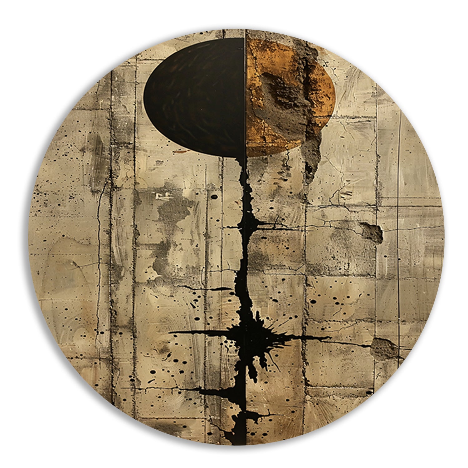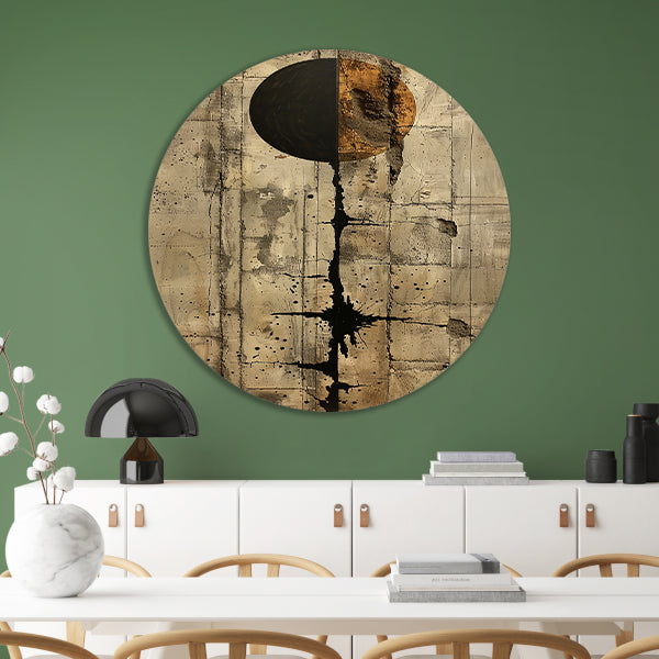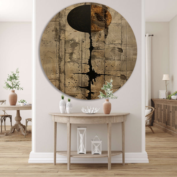 Abstract met zwarte cirkel en gouden barsten forex muurcirkel