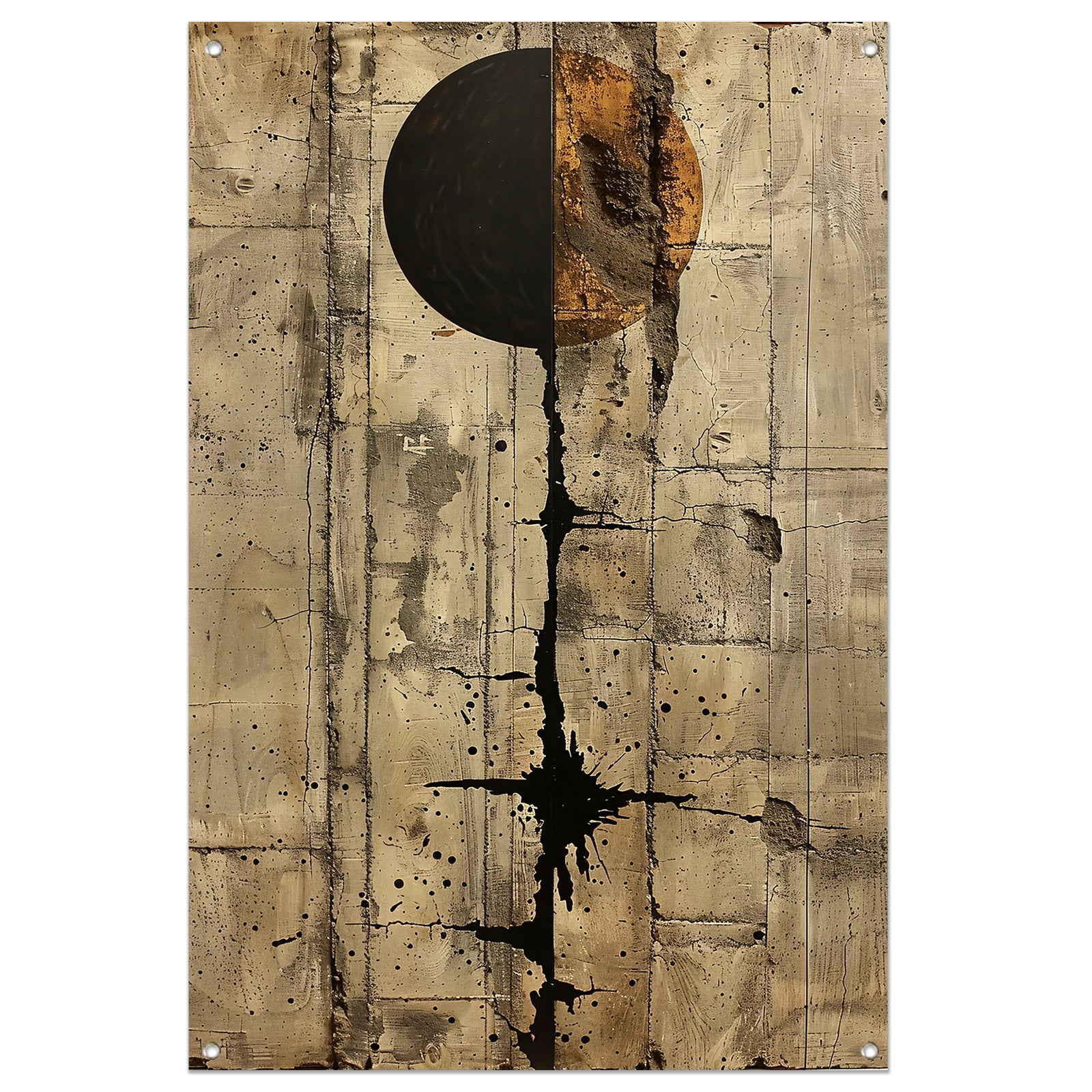Abstract met zwarte cirkel en gouden barsten tuinposter