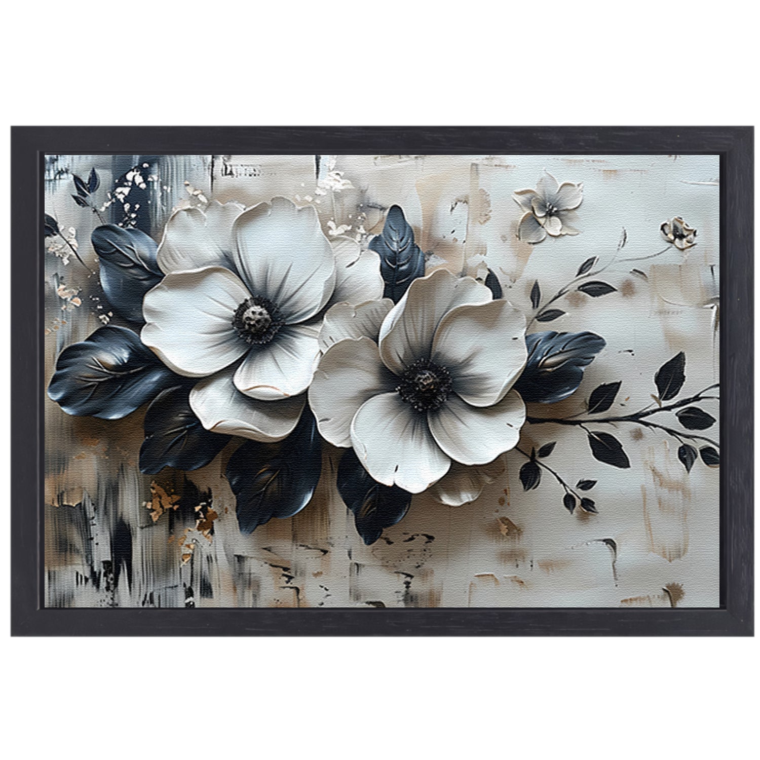 Abstract minimalistisch bloemenontwerp in zwart-wit canvas met baklijst