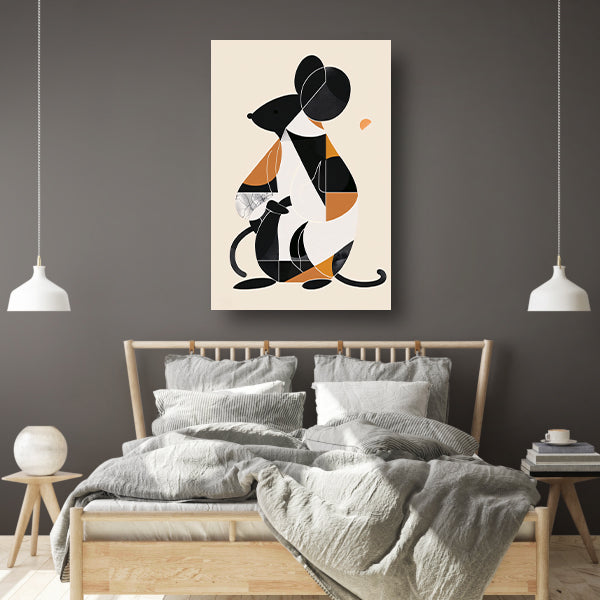 Abstract Minimalistisch Muis in Aardse Kleuren canvas met baklijst