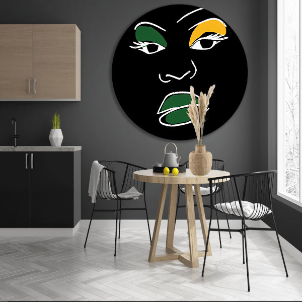 Dit kunstwerk is verkrijgbaar in diverse afmetingen, zodat je het perfect kunt afstemmen op de beschikbare ruimte in jouw interieur. Of je nu kiest voor een kleinere cirkel voor een subtiel accent of een groter formaat voor een echte eyecatcher, dit abstracte minimalistische portret zal zeker de aandacht trekken.