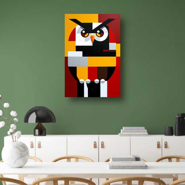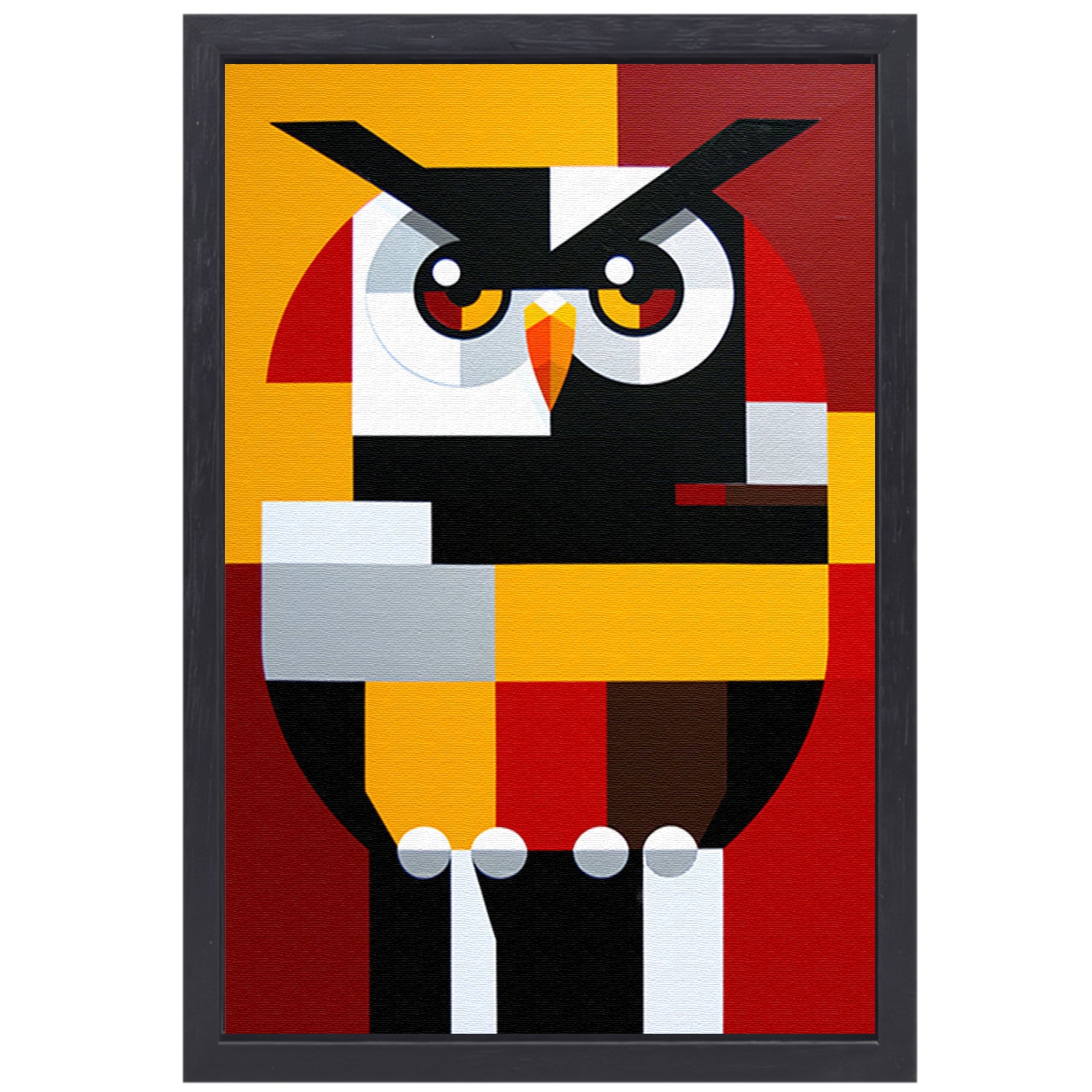 Abstract minimalistisch schilderij van een uil canvas met baklijst