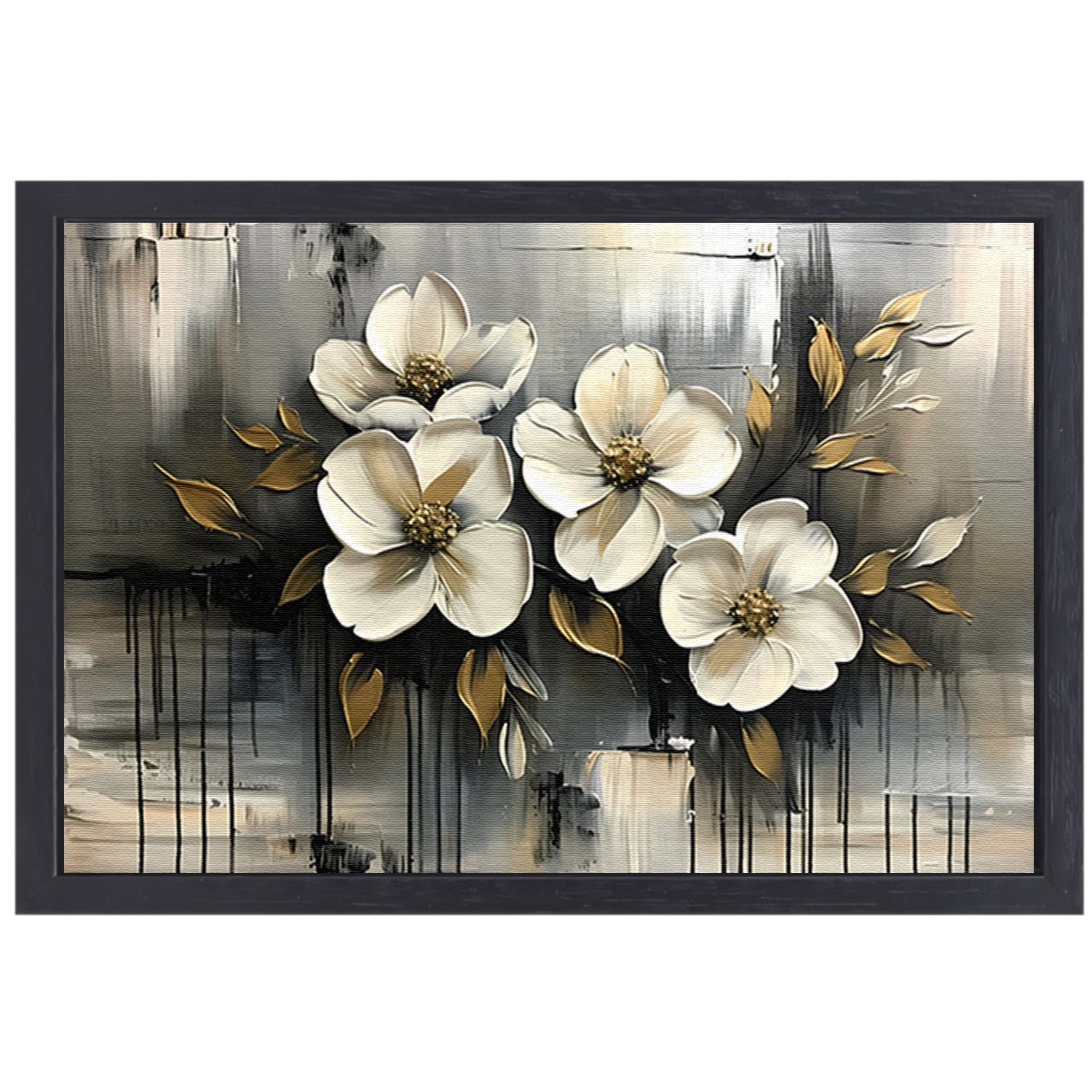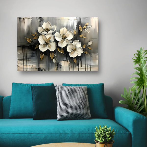 Abstract minimalistisch schilderij van witte bloemen canvas met baklijst