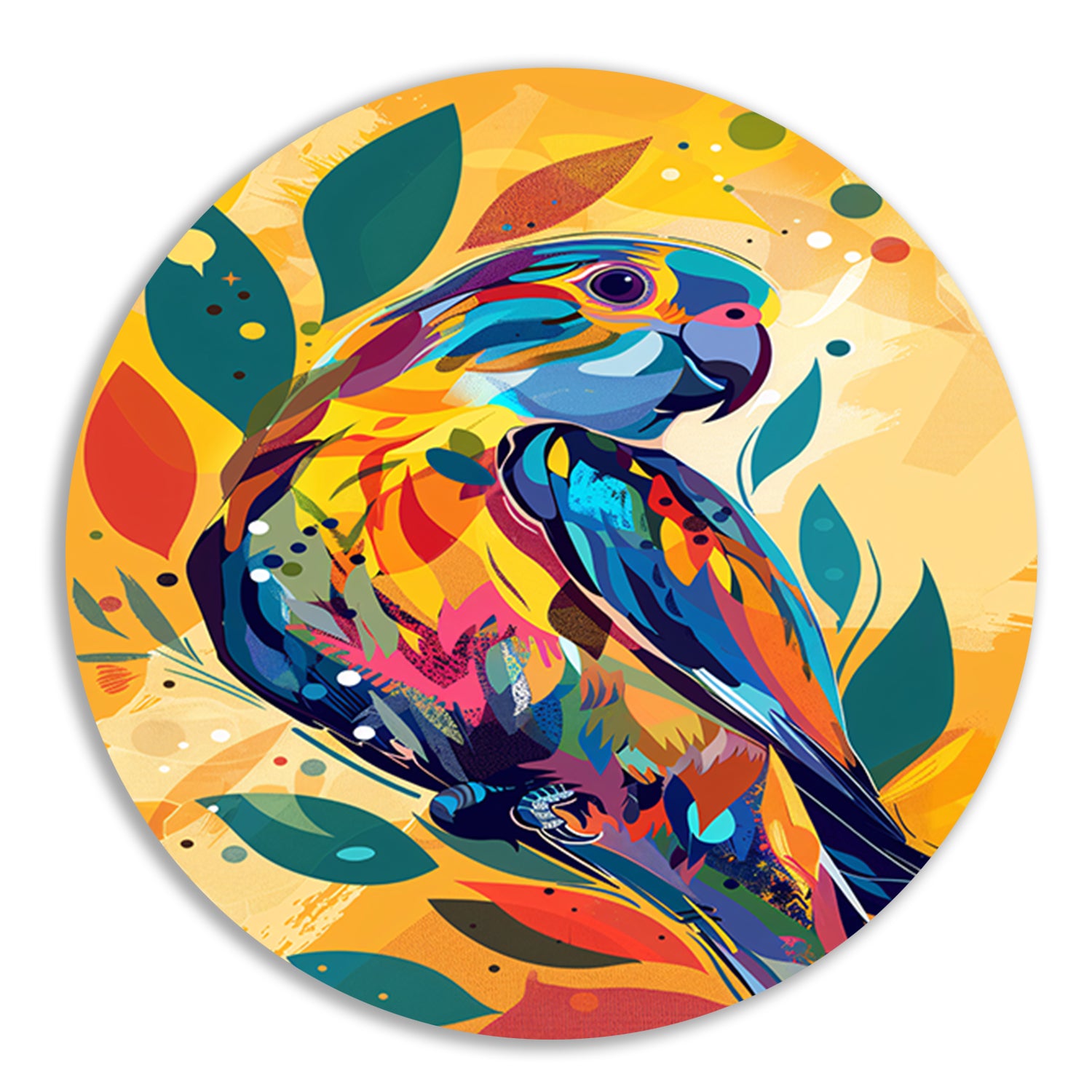 Abstract Papegaai in Kleurrijk Jungle aluminium muurcirkel