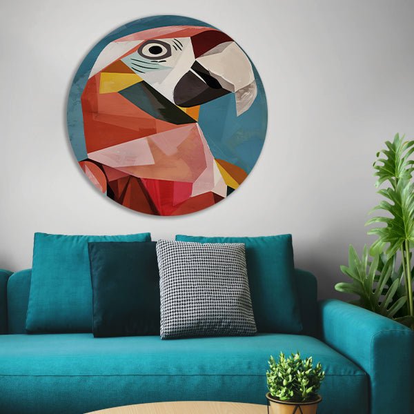Abstract Papegaai in Kubisme Stijl aluminium muurcirkel