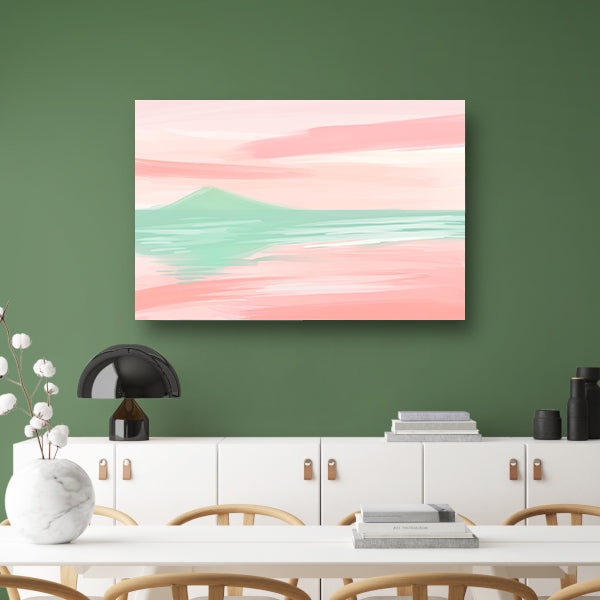 Abstract pastelkleurig berglandschap met water canvas met baklijst