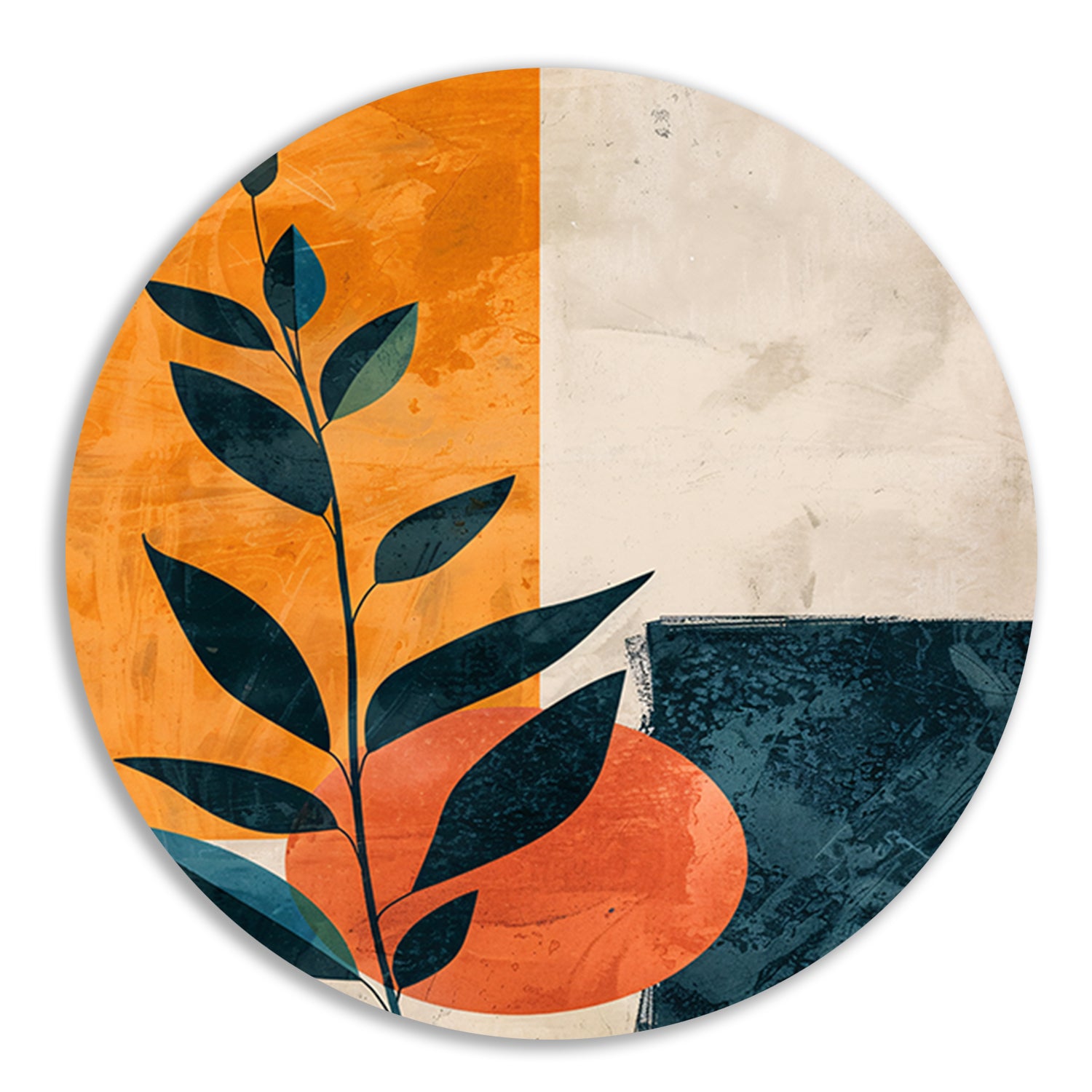 Abstract Plant met Oranje en Blauwe Vormen forex muurcirkel