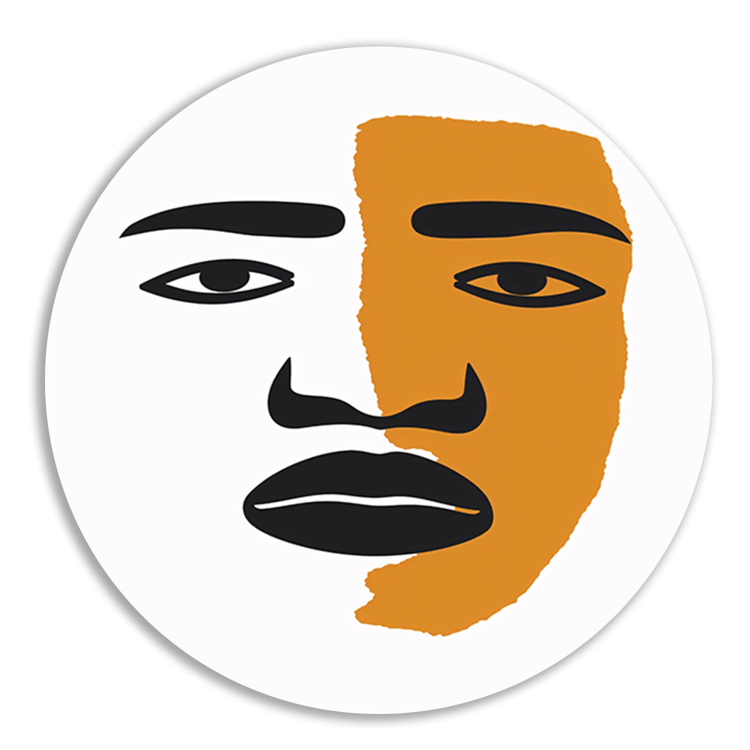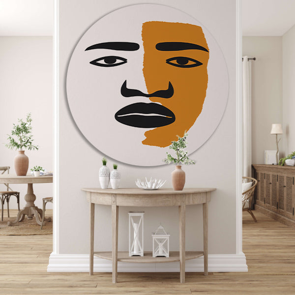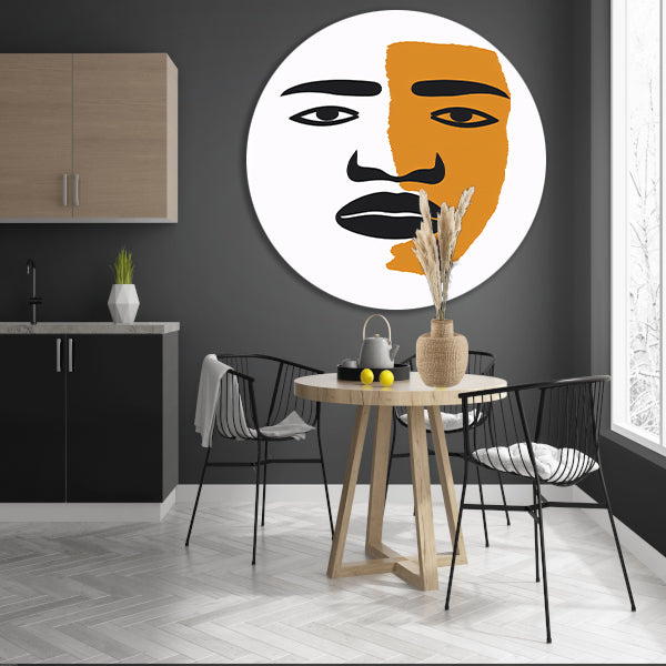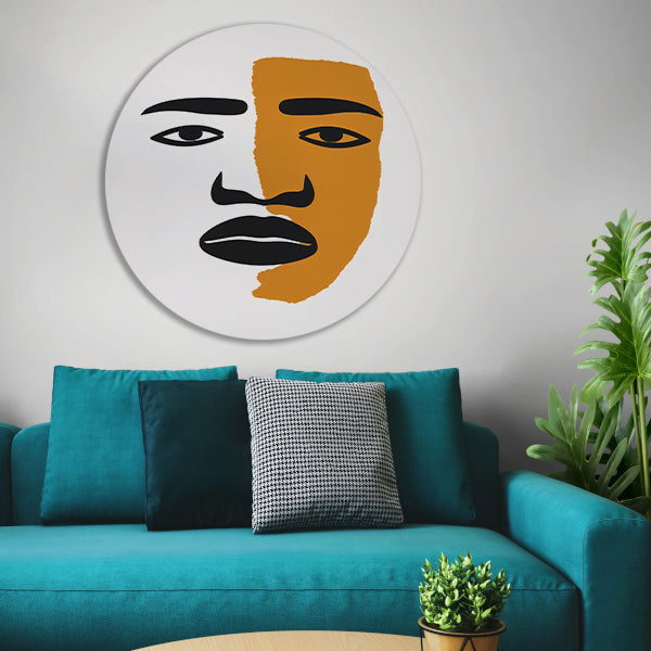 Abstract portret met contrasterende vlakken aluminium muurcirkel
