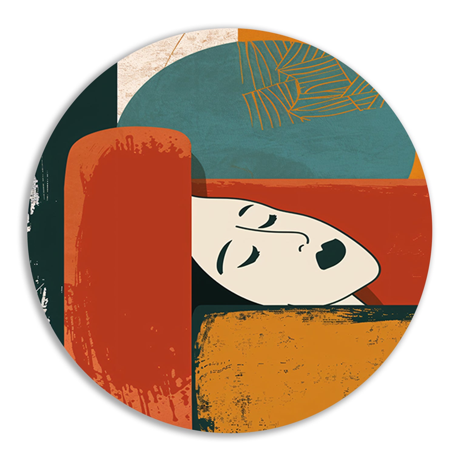 Abstract portret met geometrische vormen aluminium muurcirkel