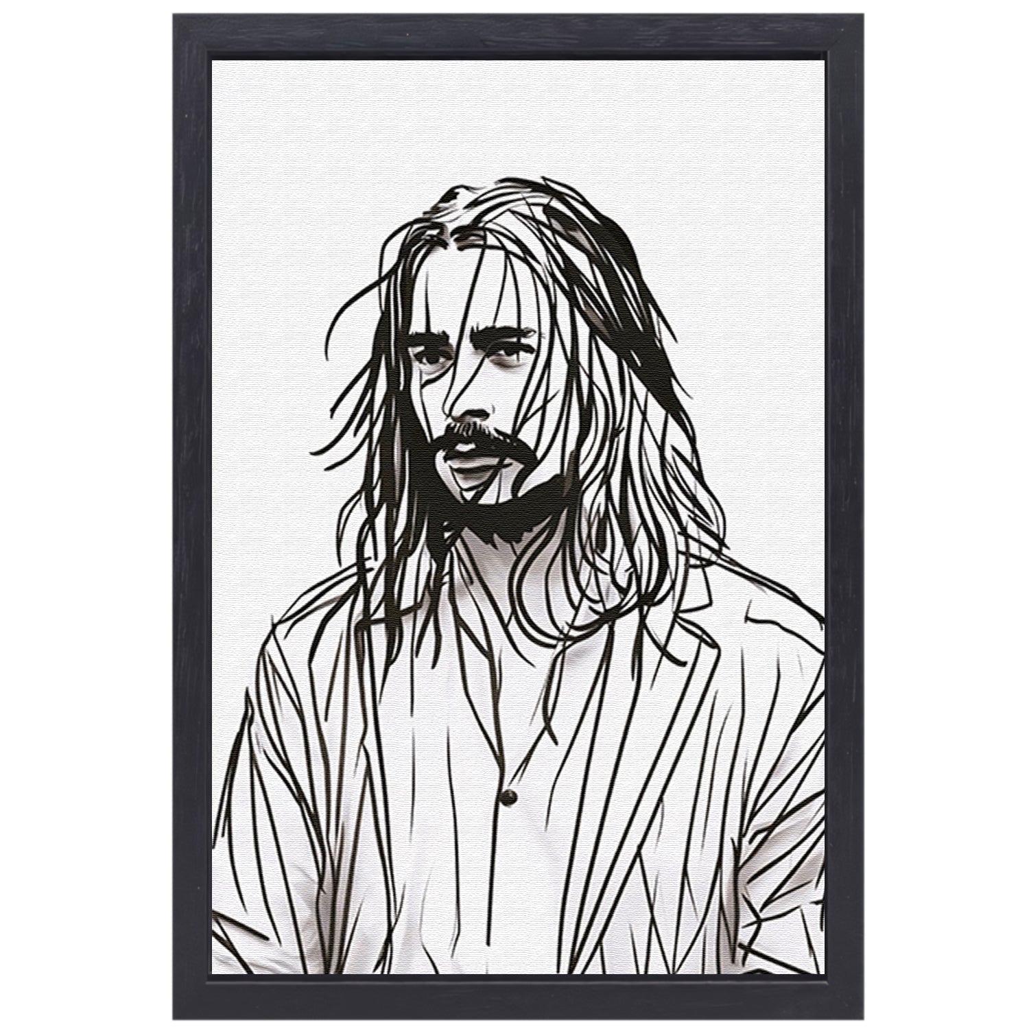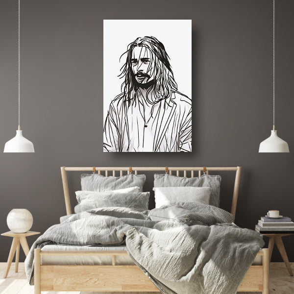 Abstract portret met zwart-witte lijnen canvas met baklijst