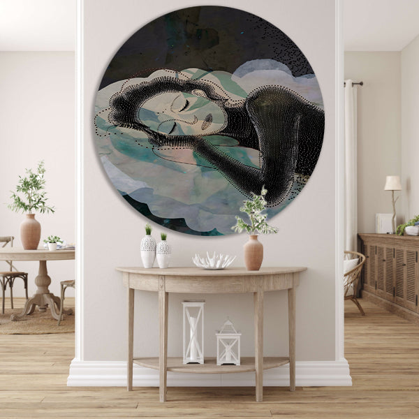 Abstract Portret van Dromerige Vrouw aluminium muurcirkel