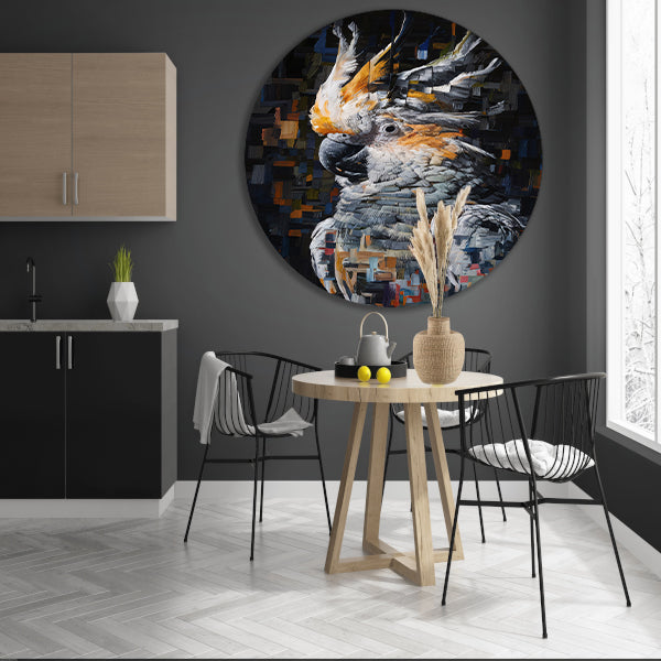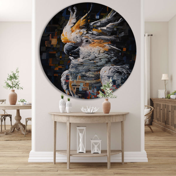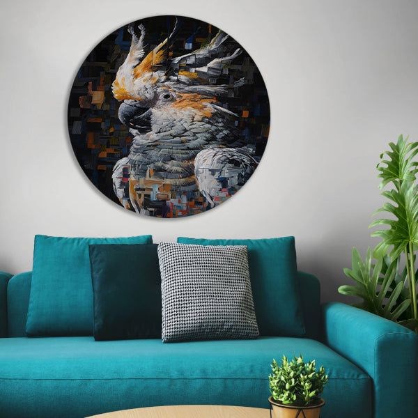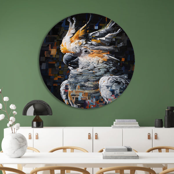 Abstract Portret van een Kleurrijke Kaketoe aluminium muurcirkel