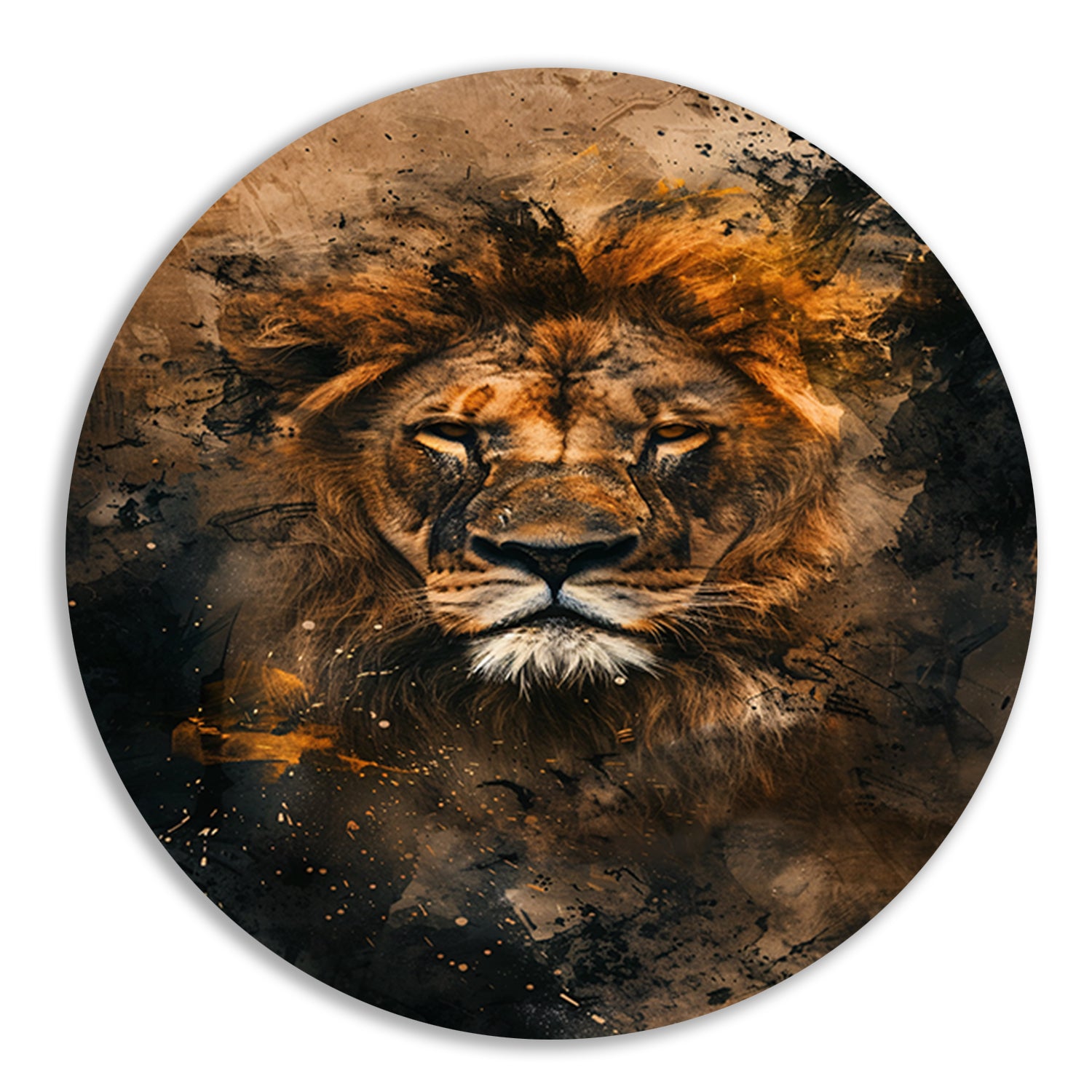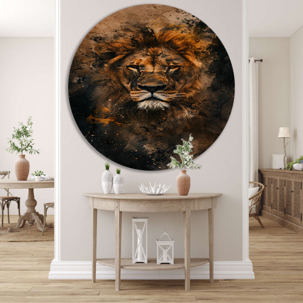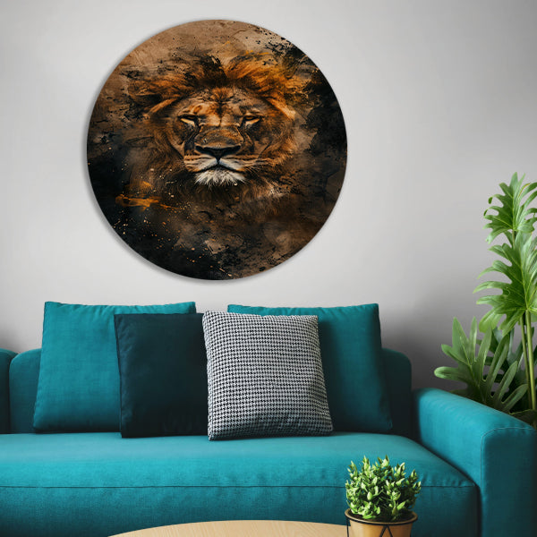 Abstract portret van leeuw in rustieke stijl aluminium muurcirkel