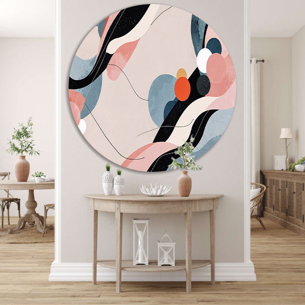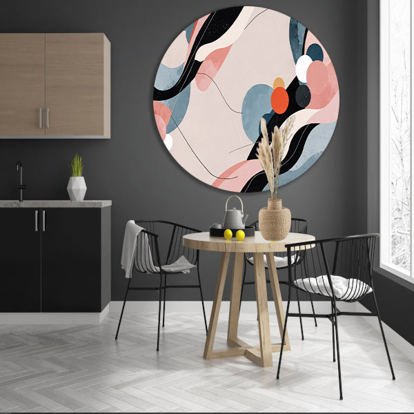 Abstract schilderij in Japandi stijl aluminium muurcirkel