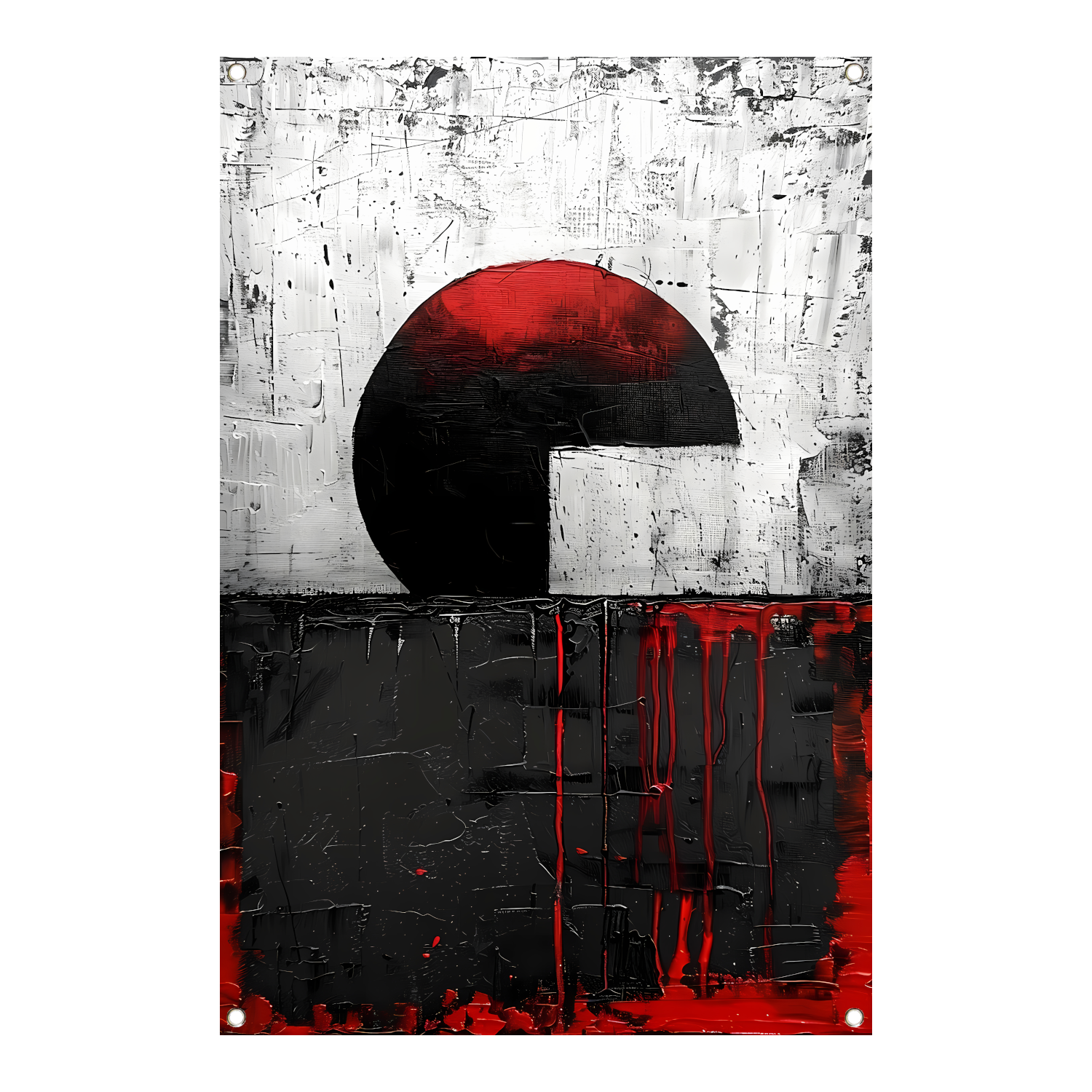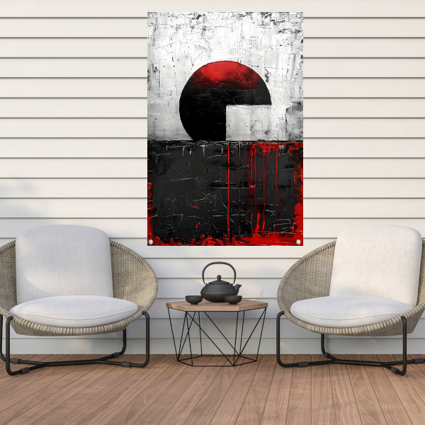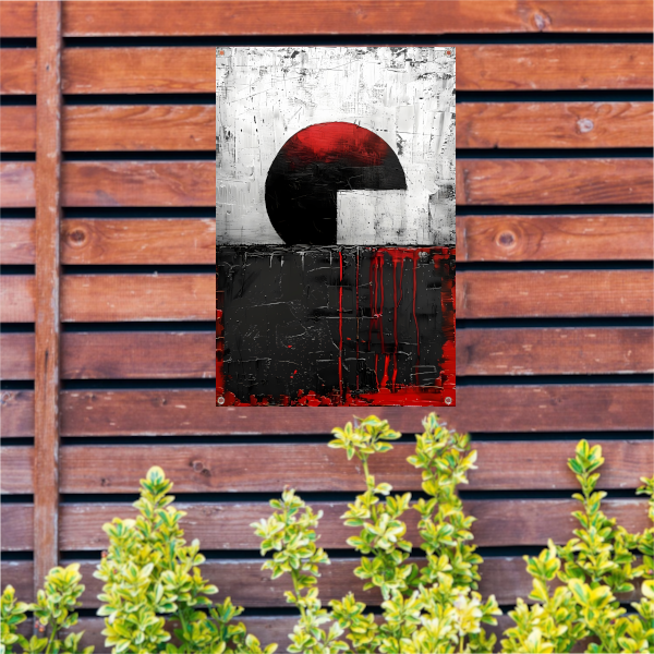Abstract schilderij met cirkel en verfstrepen tuinposter
