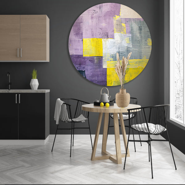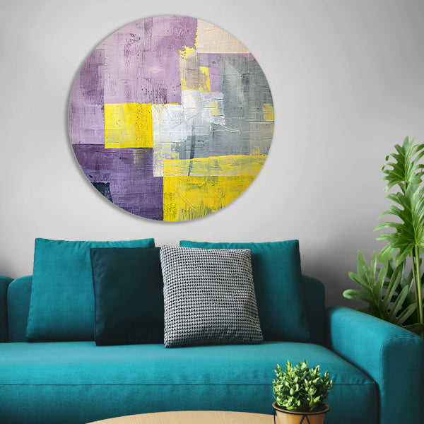 Abstract schilderij met contrasterende kleurvlakken aluminium muurcirkel