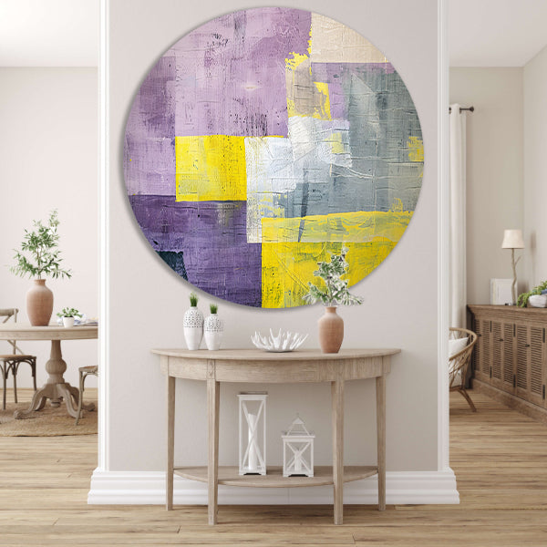 Abstract schilderij met contrasterende kleurvlakken forex muurcirkel