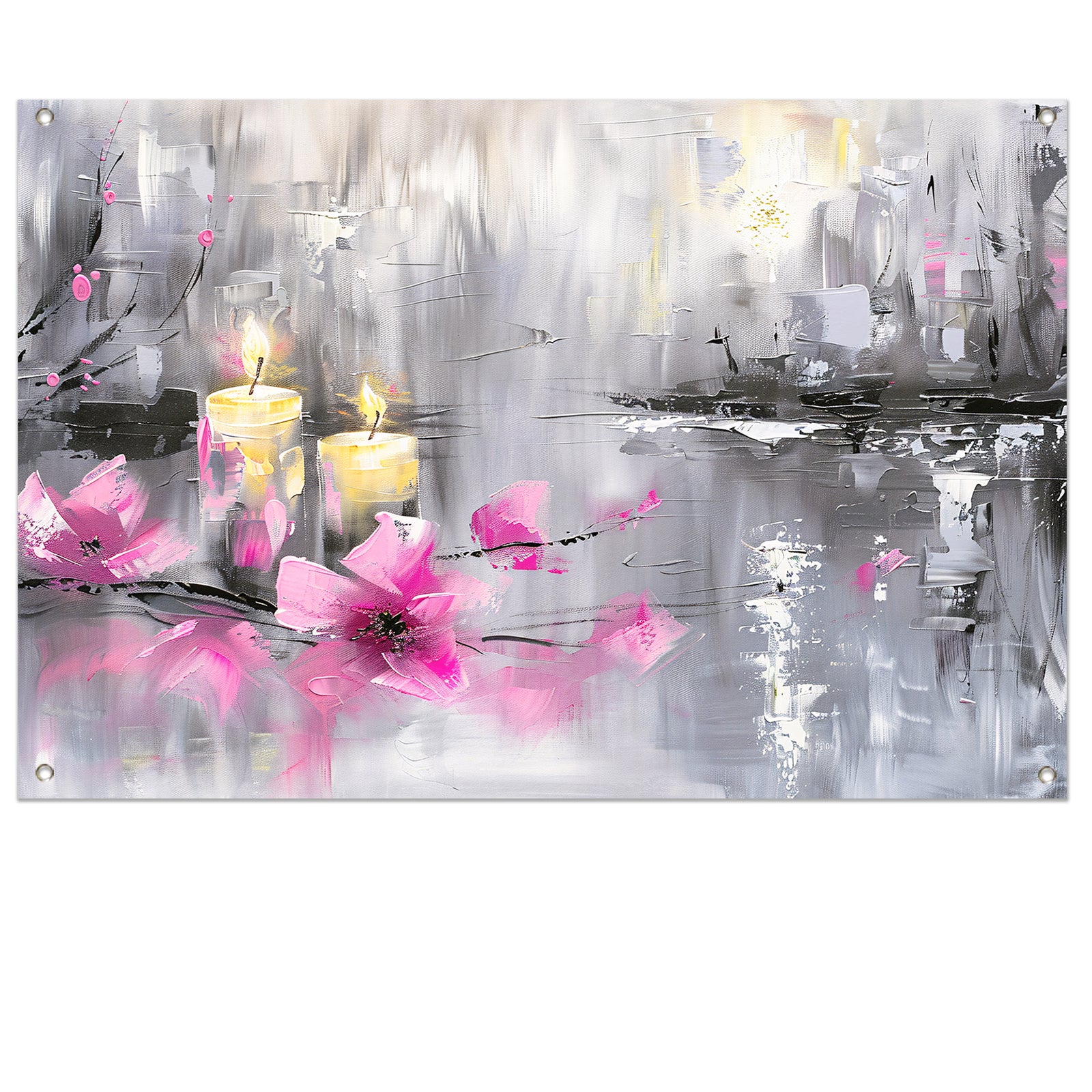Abstract schilderij met kaarsen en bloemen tuinposter