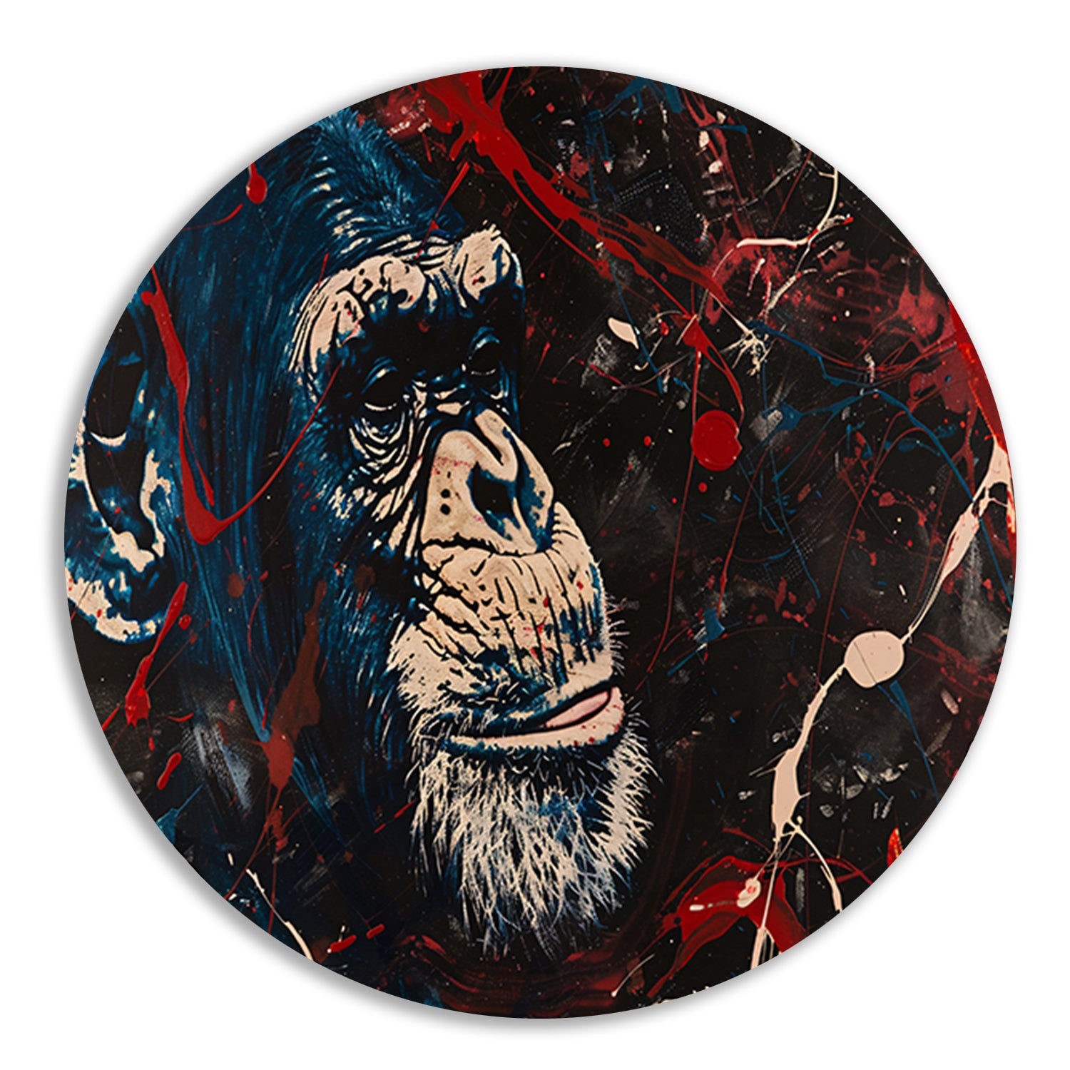 Bestel vandaag nog dit prachtige abstracte schilderij van een aap met verfspetters op forex muurcirkel en geef je interieur een artistieke touch!