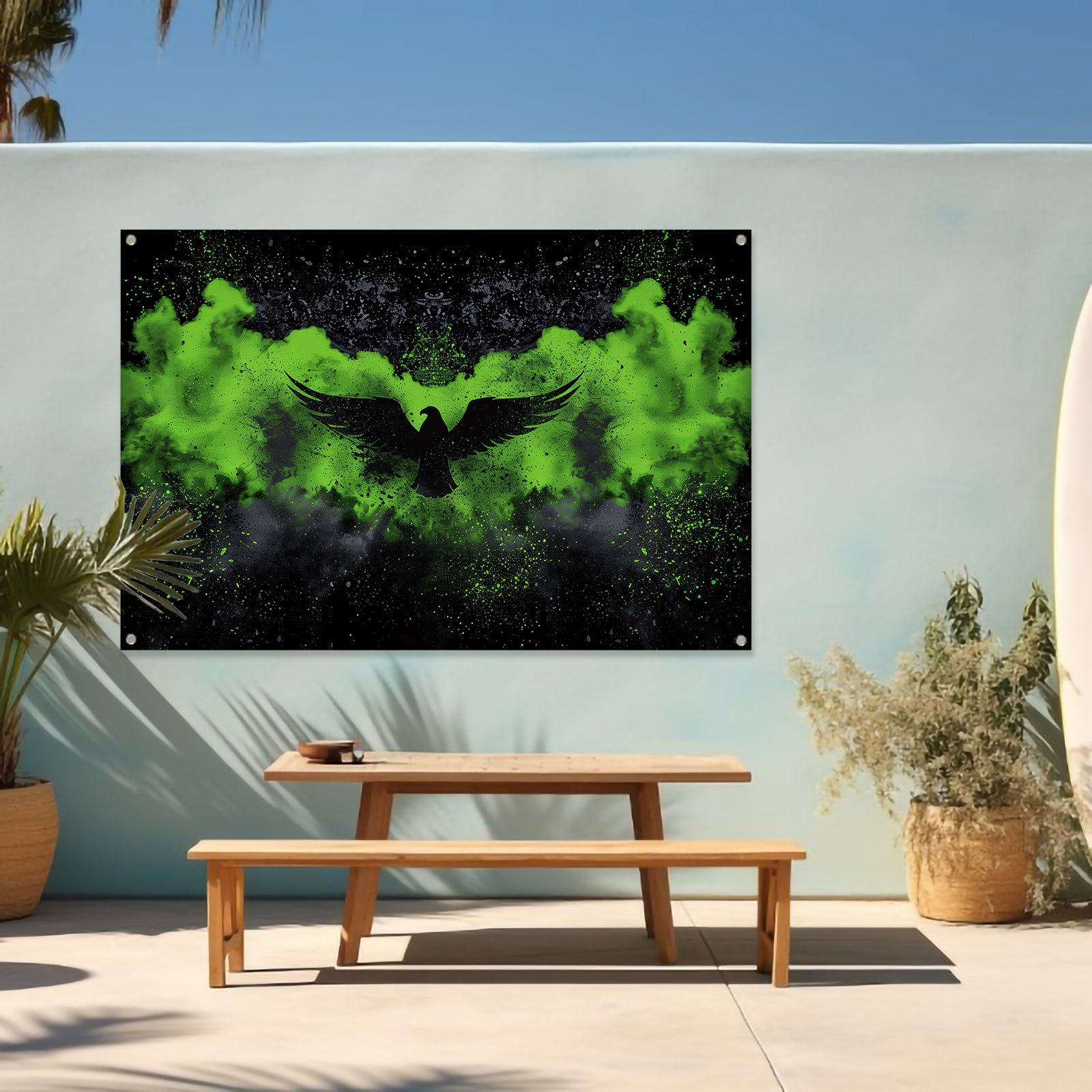 Onze tuinposters zijn UV- en waterbestendig, waardoor ze bestand zijn tegen zon en regen en hun kleuren langdurig mooi blijven. Alle tuinposters van De Muurdecoratie zijn voorzien van ringen in de hoeken, zodat je ze eenvoudig kunt ophangen. Let op: onze tuinposters worden niet met ophangsysteem geleverd.