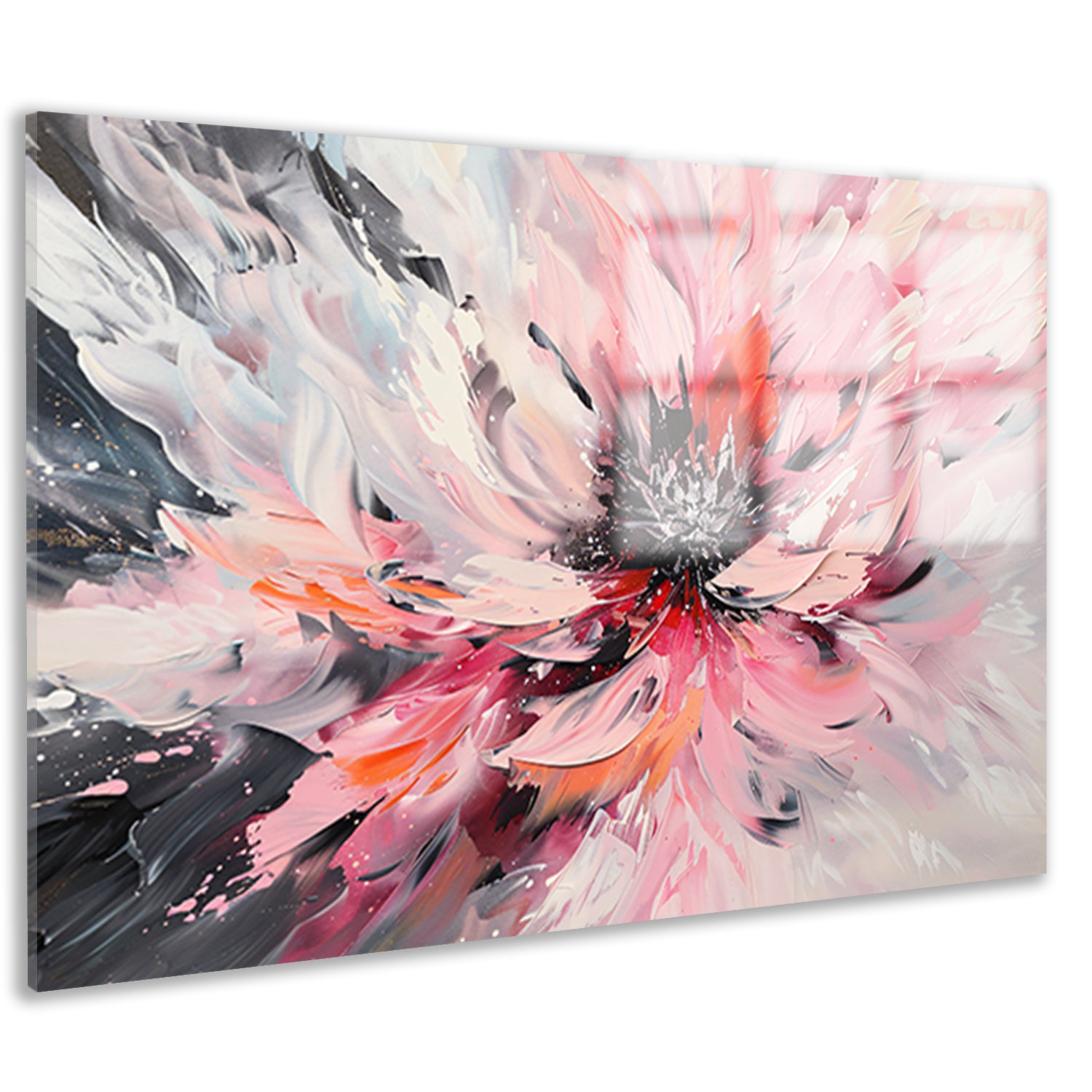Abstract schilderij van chrysant in dynamische kleuren acrylglas