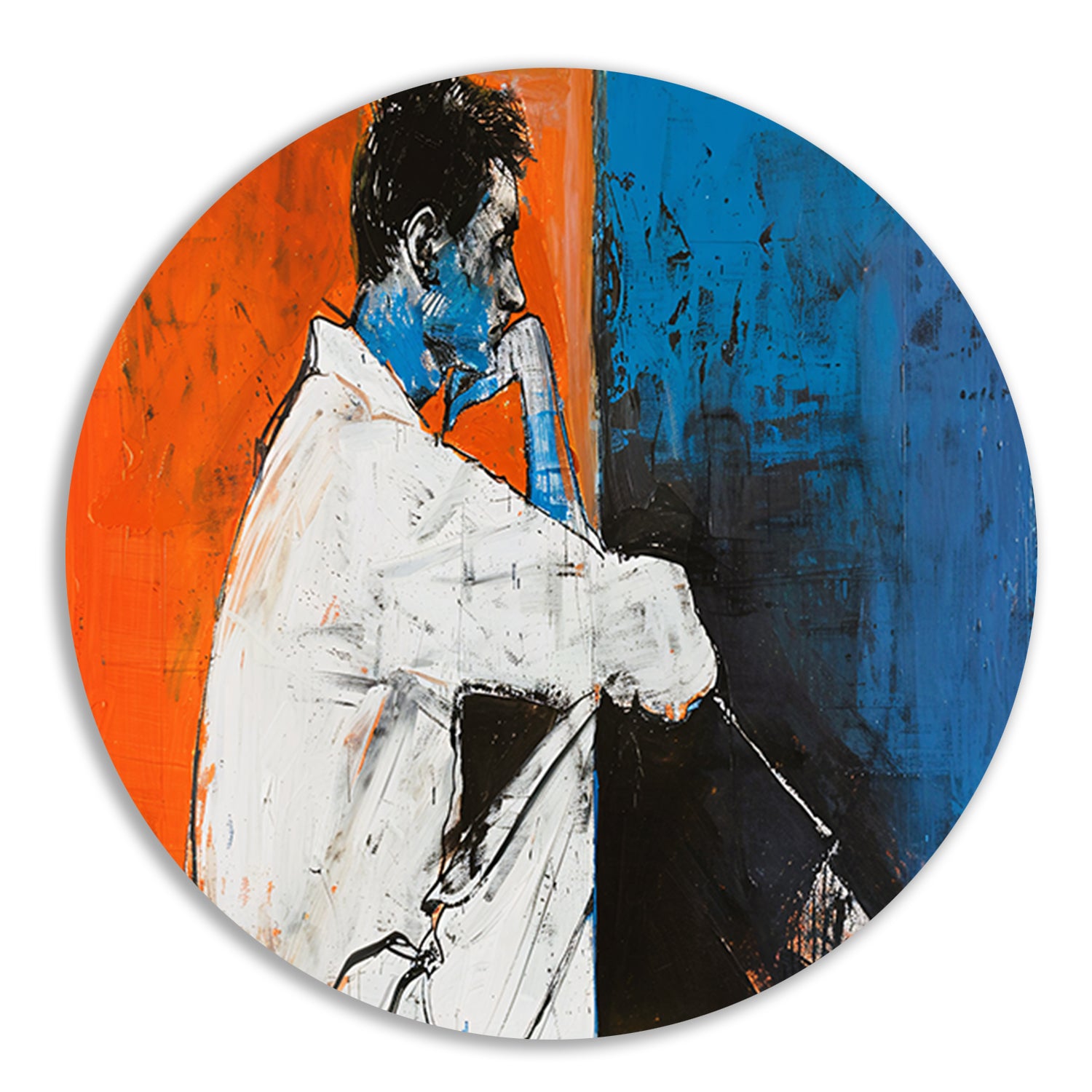 Laat je creativiteit de vrije loop en geef je interieur een artistieke touch met dit prachtige abstracte schilderij van een denkende man op forex muurcirkel. Bestel vandaag nog en creëer een unieke en stijlvolle uitstraling in je huis.