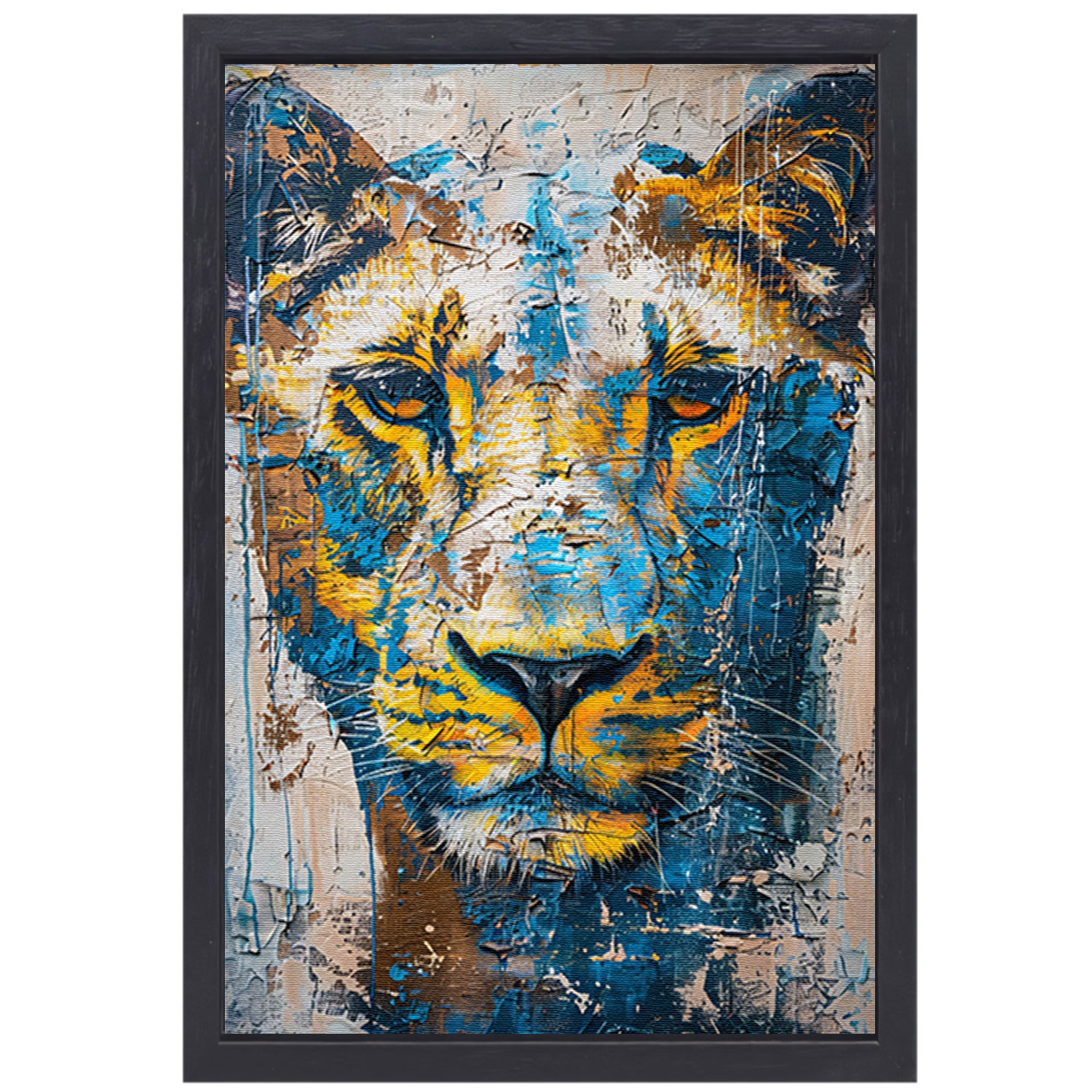Abstract schilderij van een dynamische leeuw canvas met baklijst