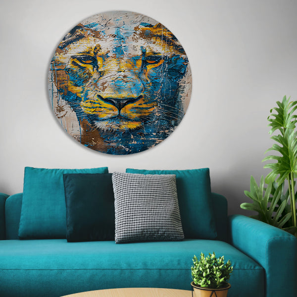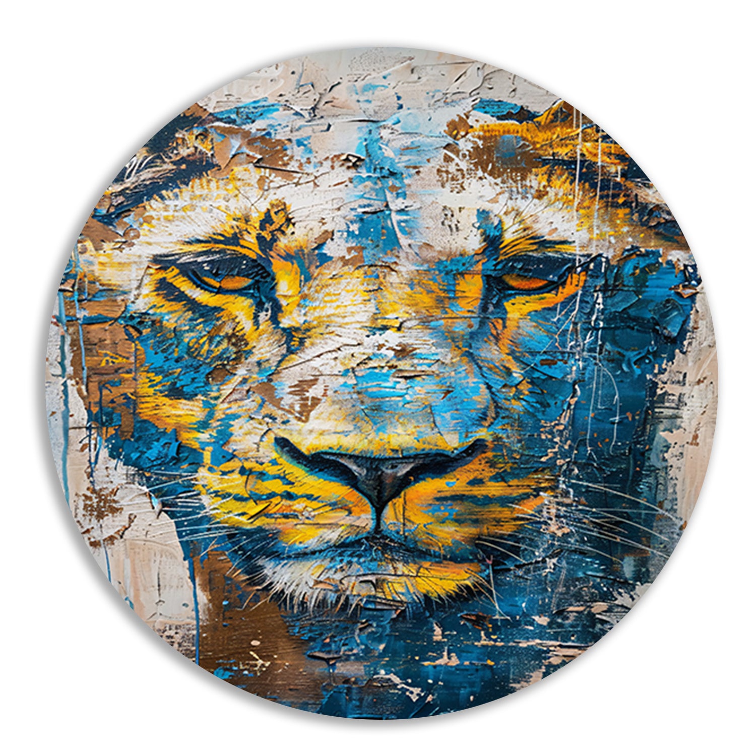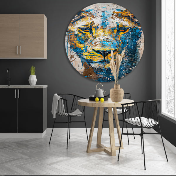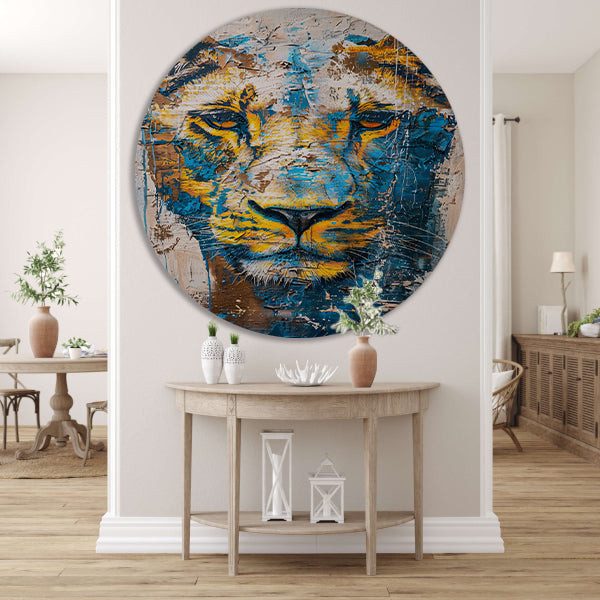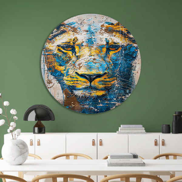 Abstract schilderij van een dynamische leeuw forex muurcirkel