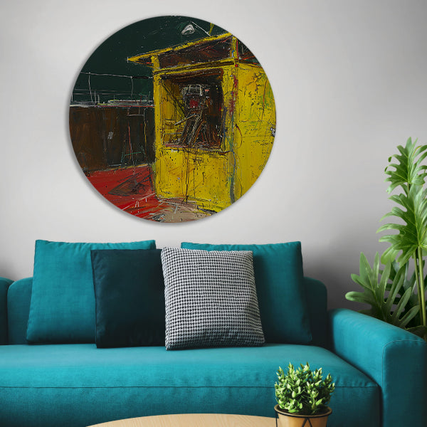 Abstract schilderij van een gereedschaphok aluminium muurcirkel